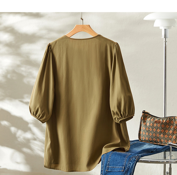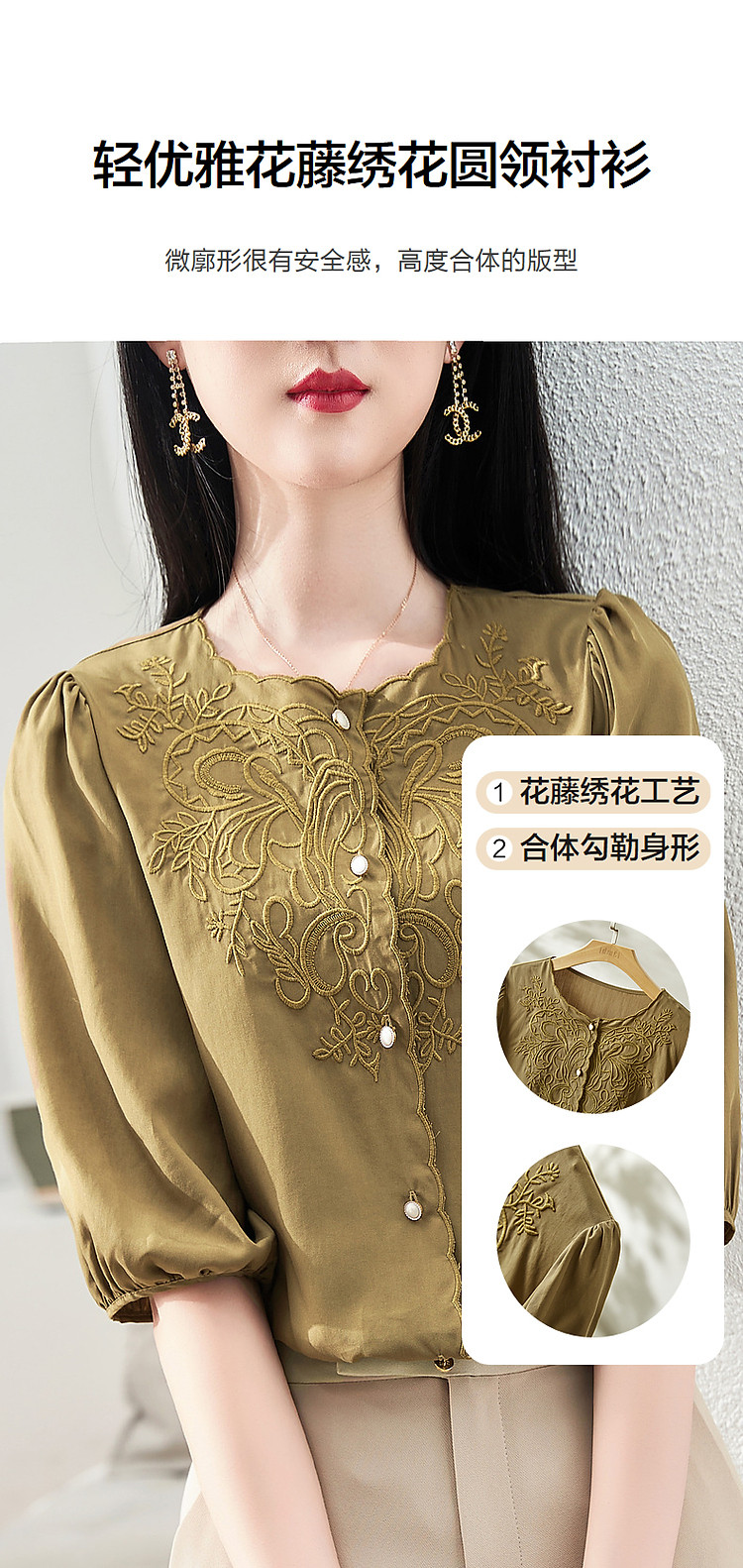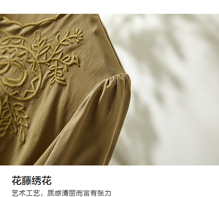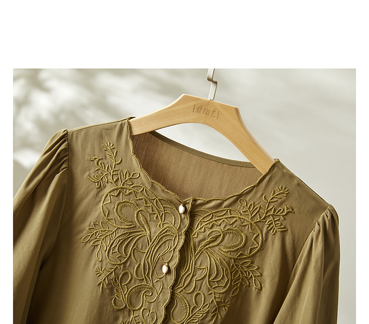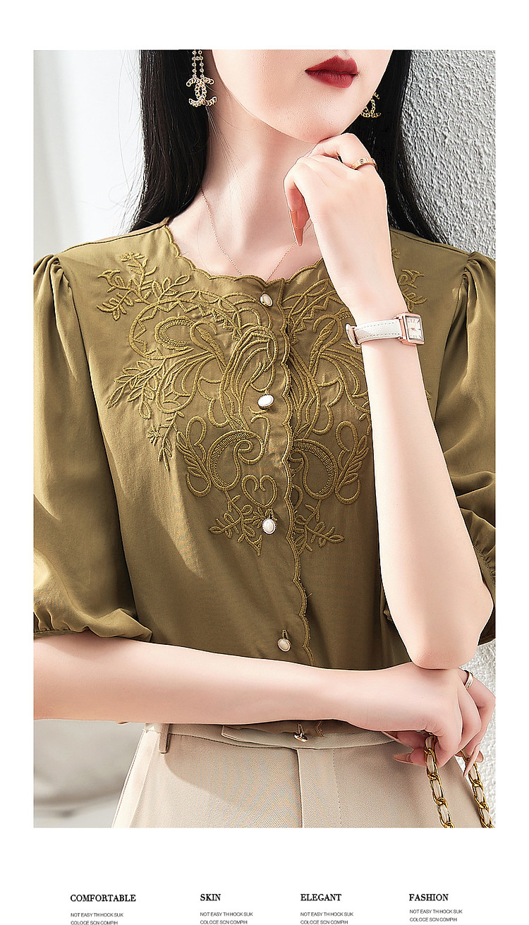 商品名称:【呼吸感花藤刺绣衬衫】夏法式文艺设计感褶皱藏肉舒适衬衣女上衣 142273