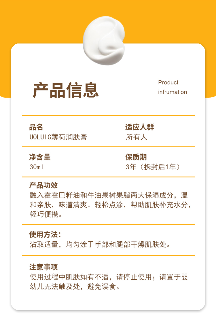 商品名称:小蜜蜂薄荷润肤膏儿童成人锁水润养温和