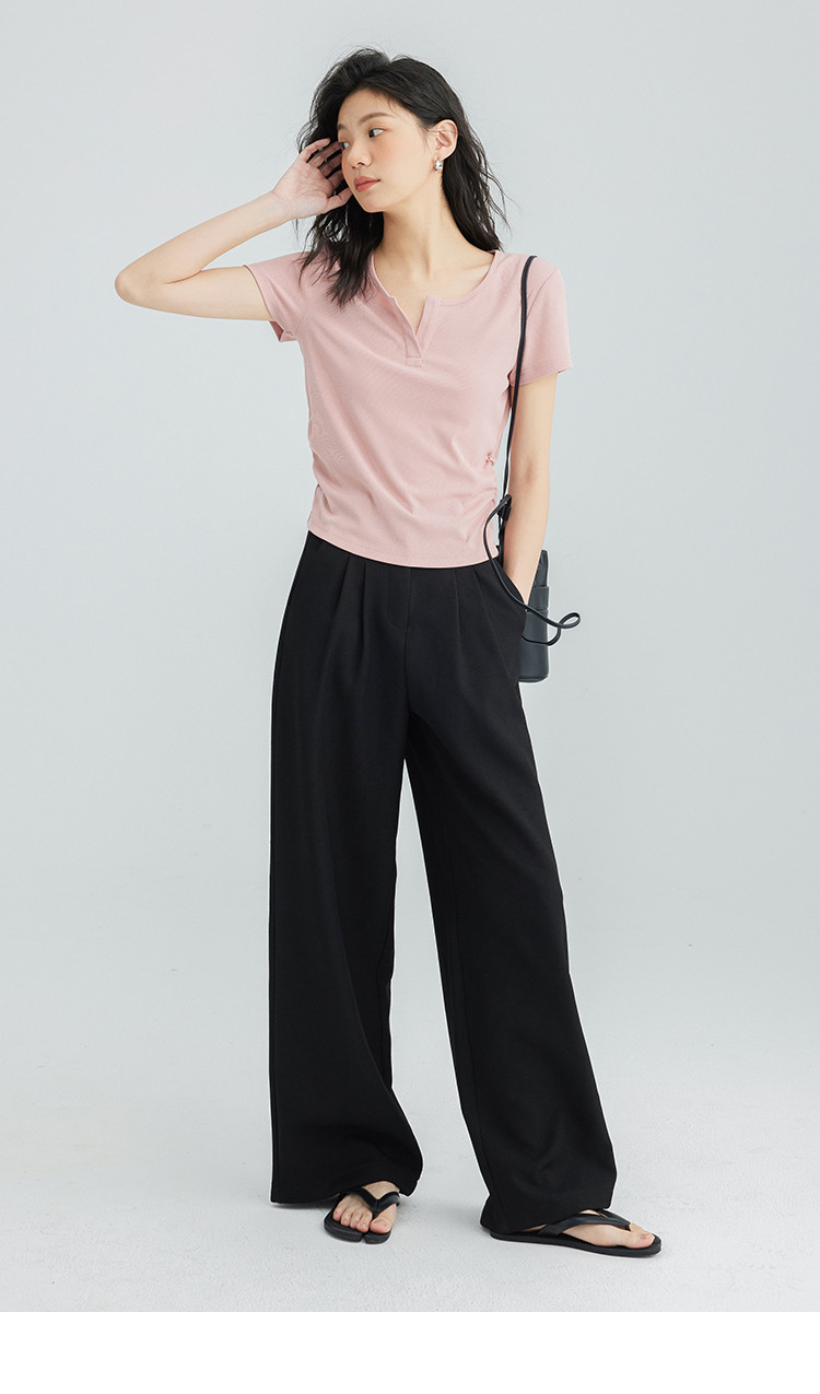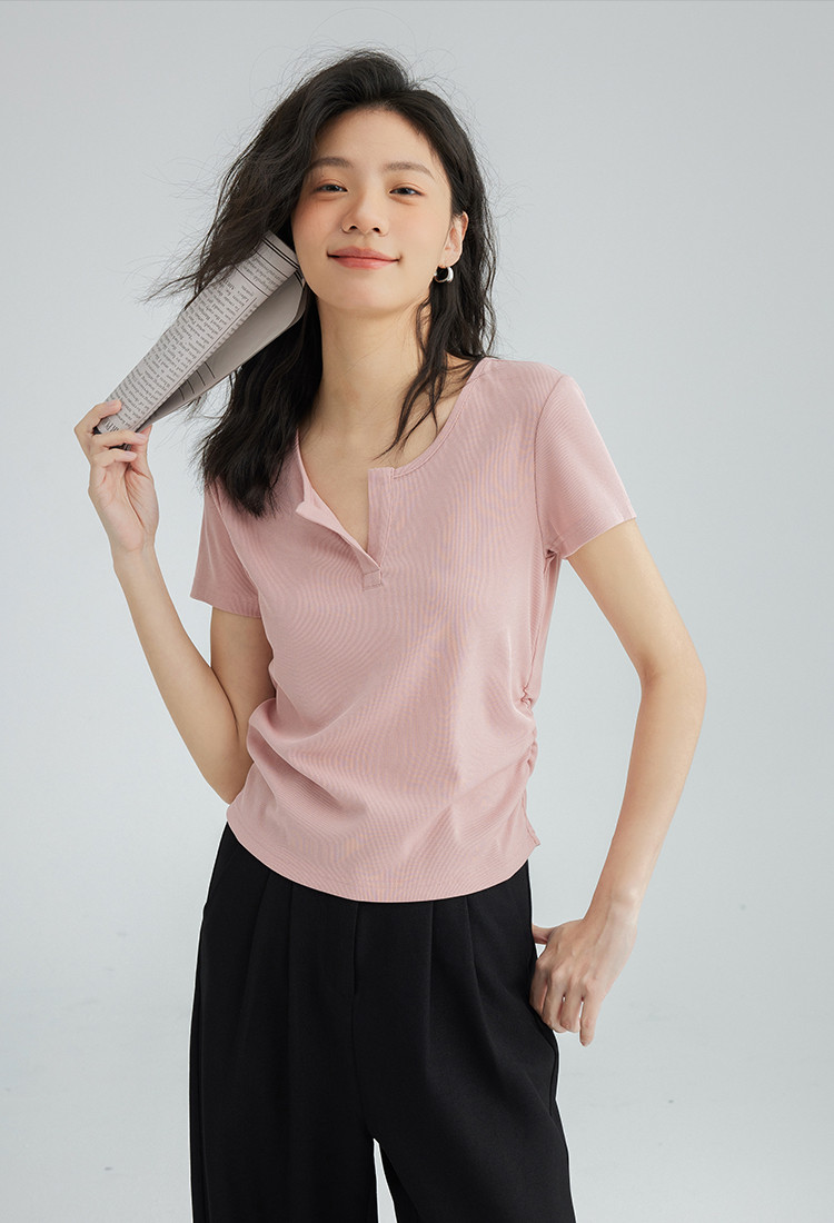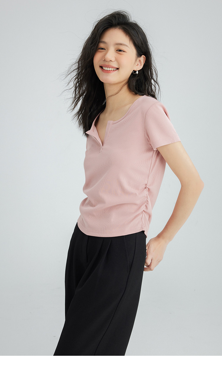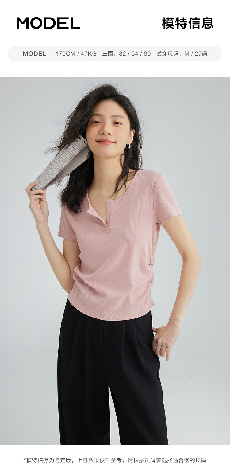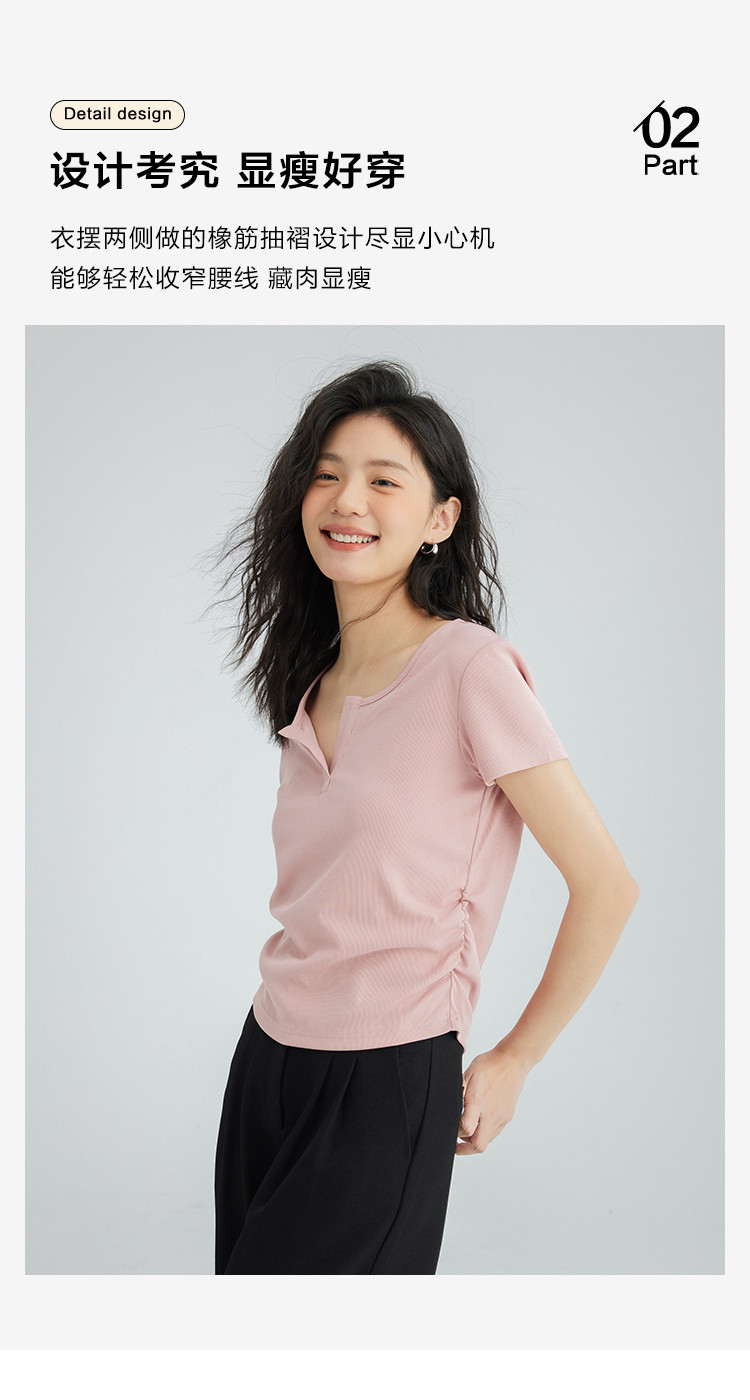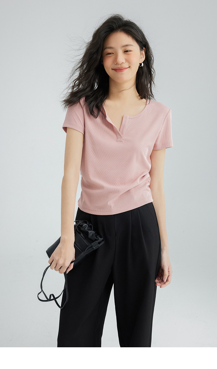 商品名称:【简约款开叉短袖T】夏款减龄出挑直角肩修身收腰短袖 969858