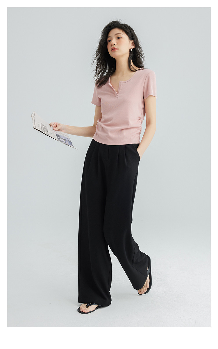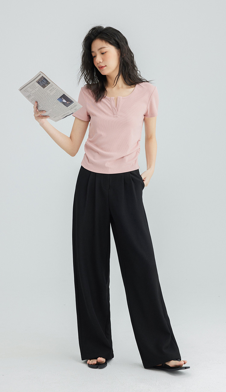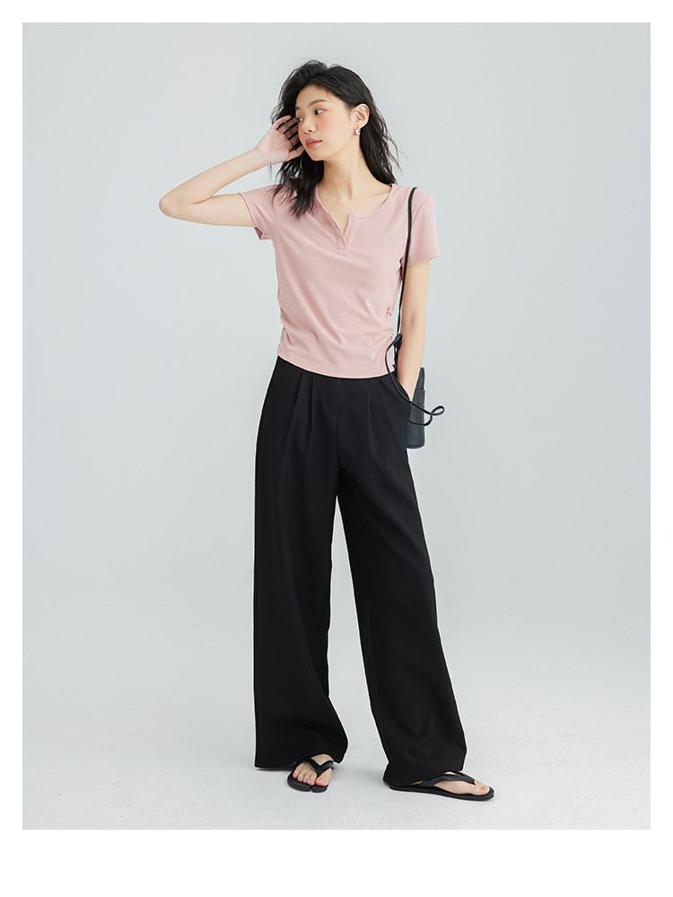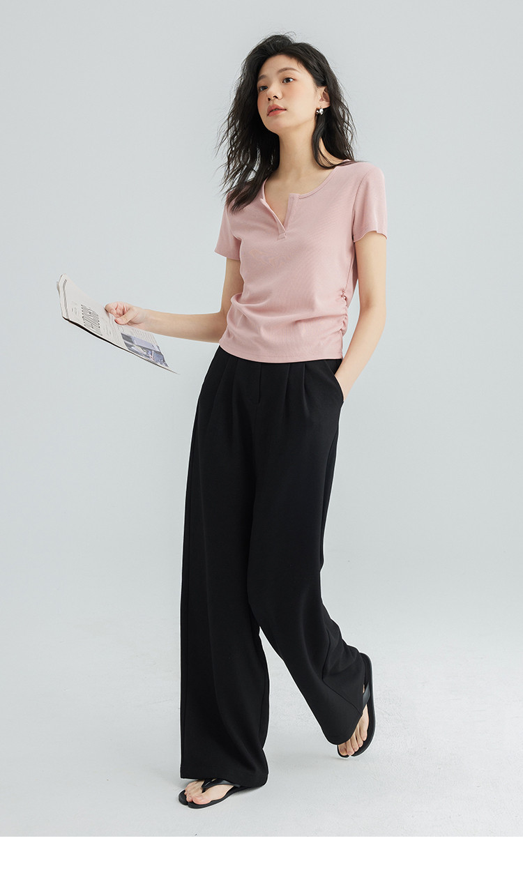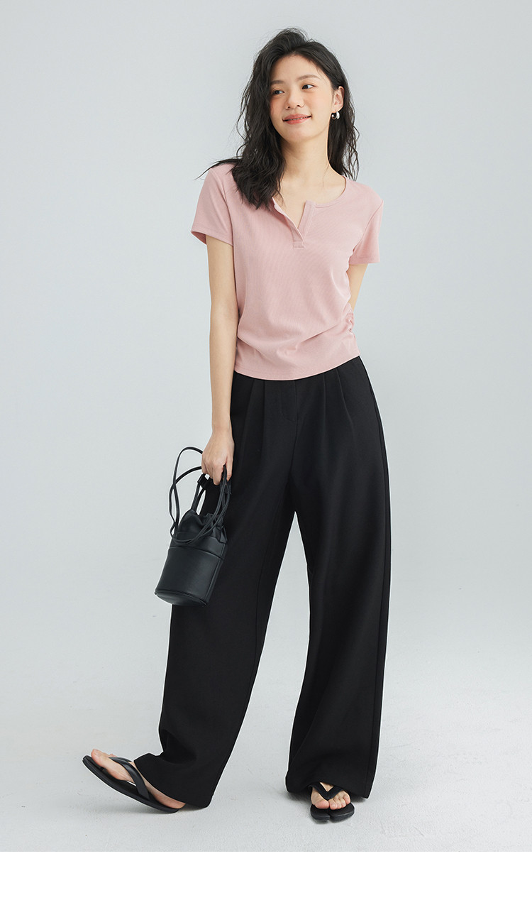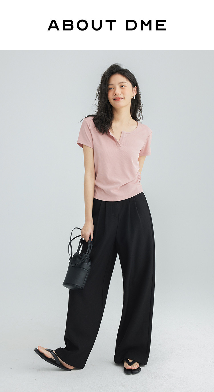 商品名称:【简约款开叉短袖T】夏款减龄出挑直角肩修身收腰短袖 969858