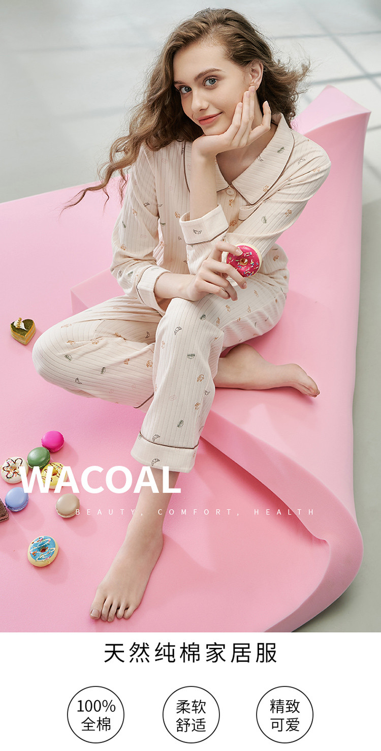 【棉100%】舒适全棉柔软可爱长袖长裤家居服女 181765