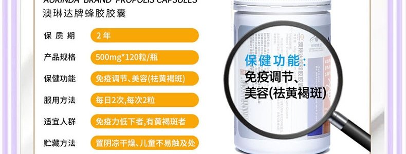 商品名称:澳洲 澳琳达(AURINDA)蜂胶胶囊 500mg*120粒