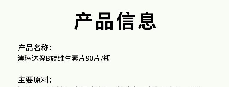 商品名称:澳洲 澳琳达(AURINDA)B族维生素片 550mg×90片