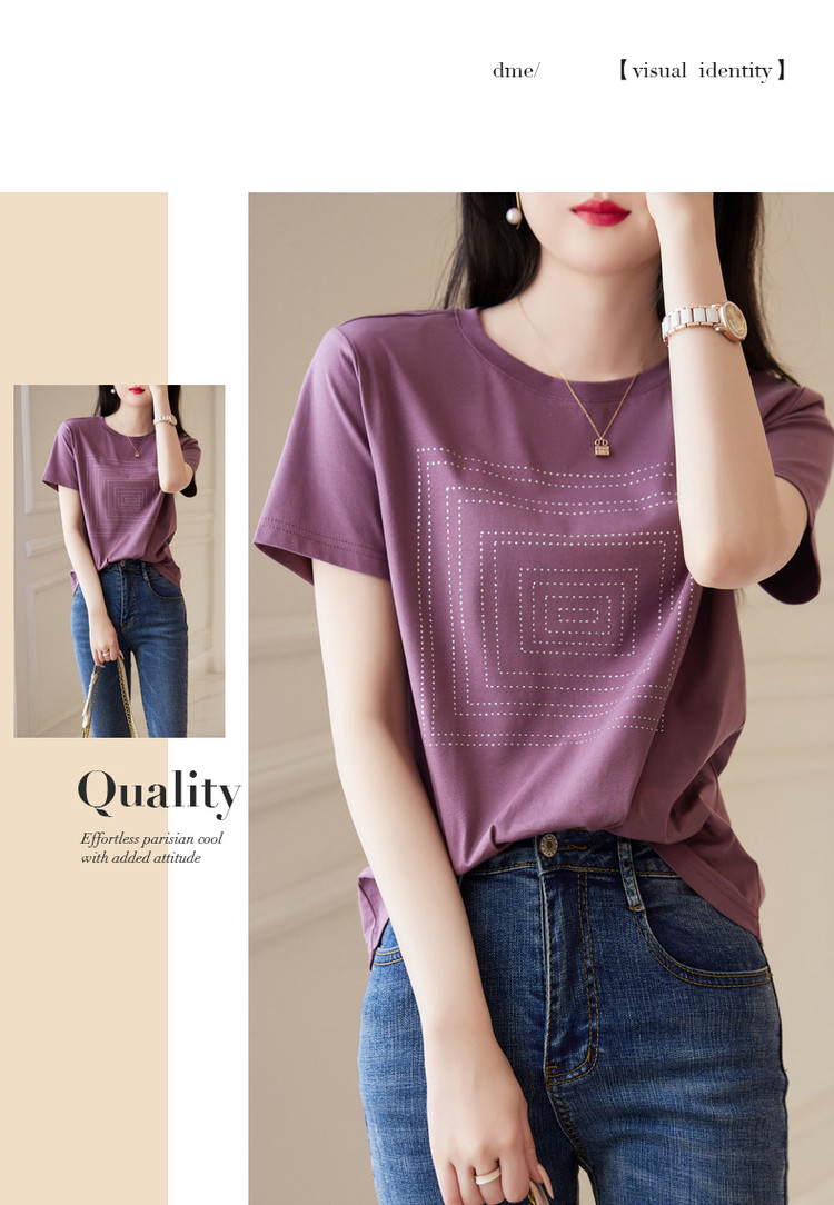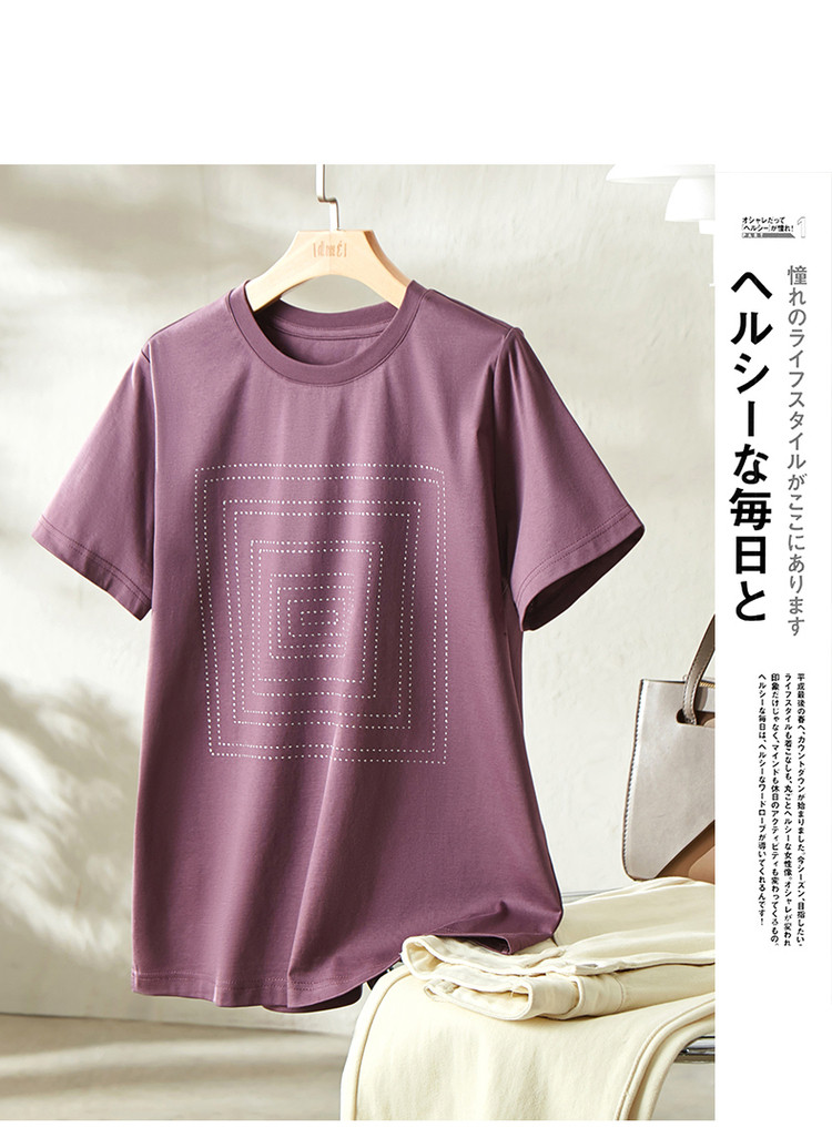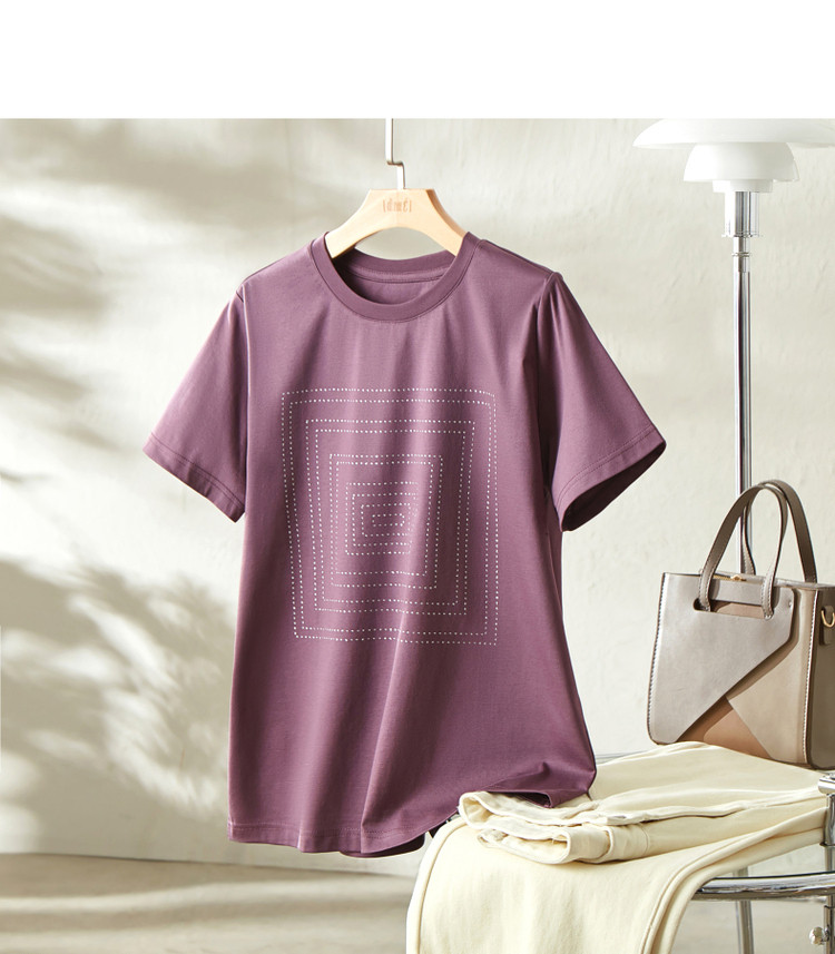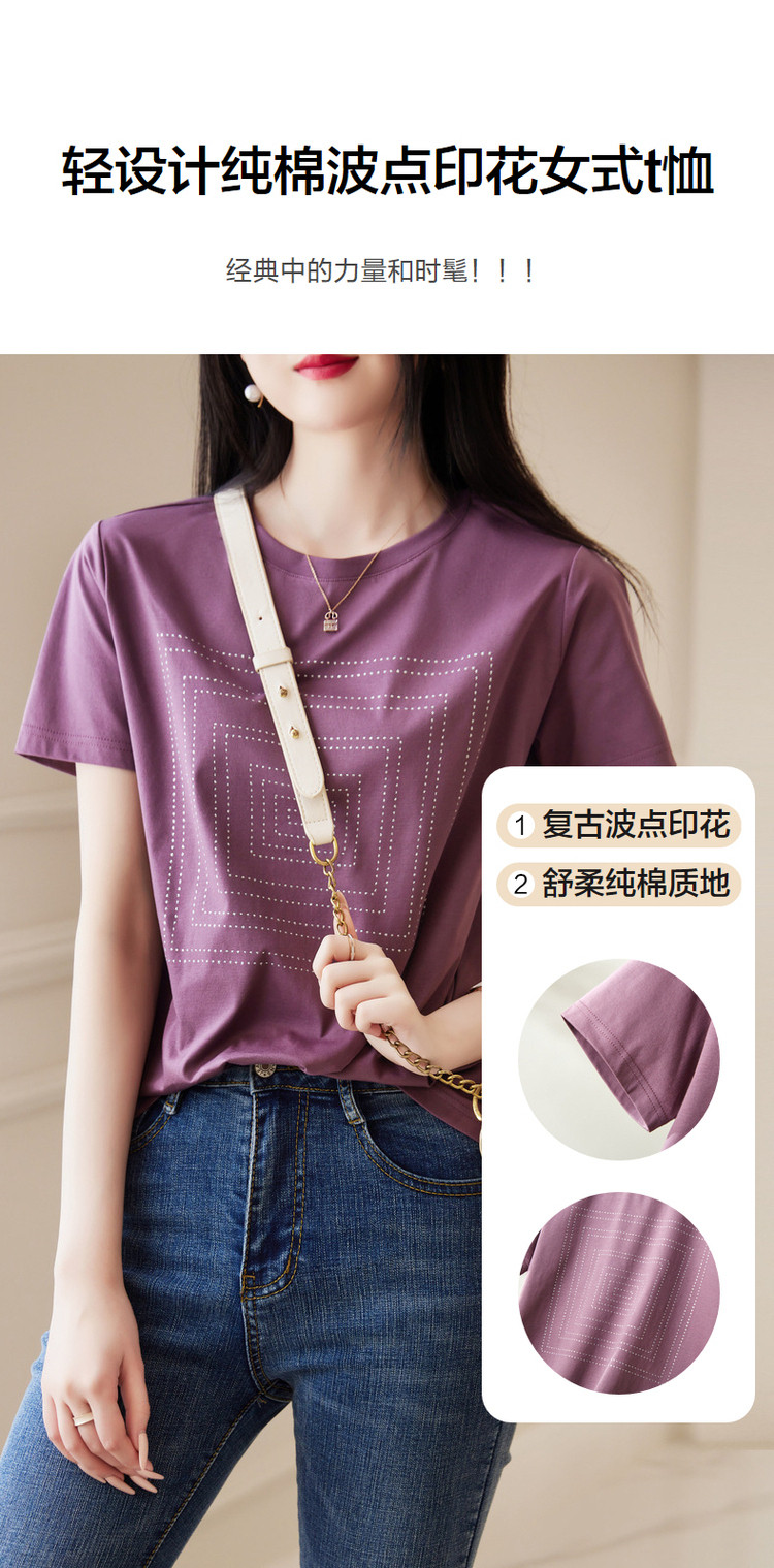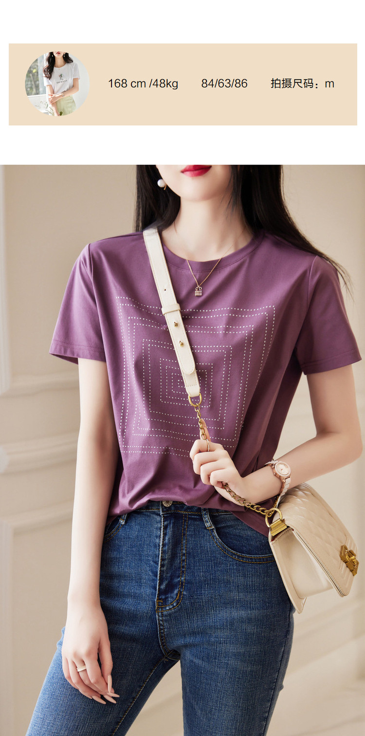 商品名称:【乌梅子酱】夏呼吸感丝光棉纯棉短袖t恤女高清印花遮肉女式t恤 248193