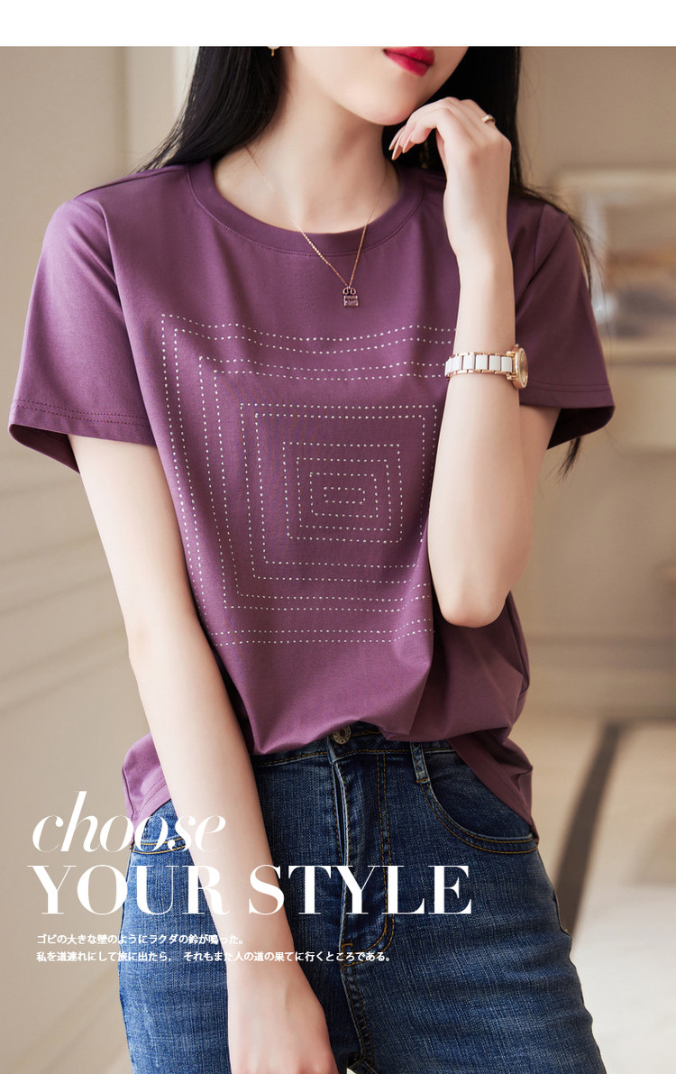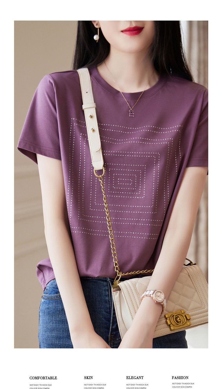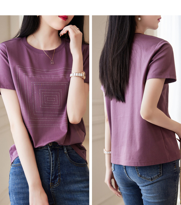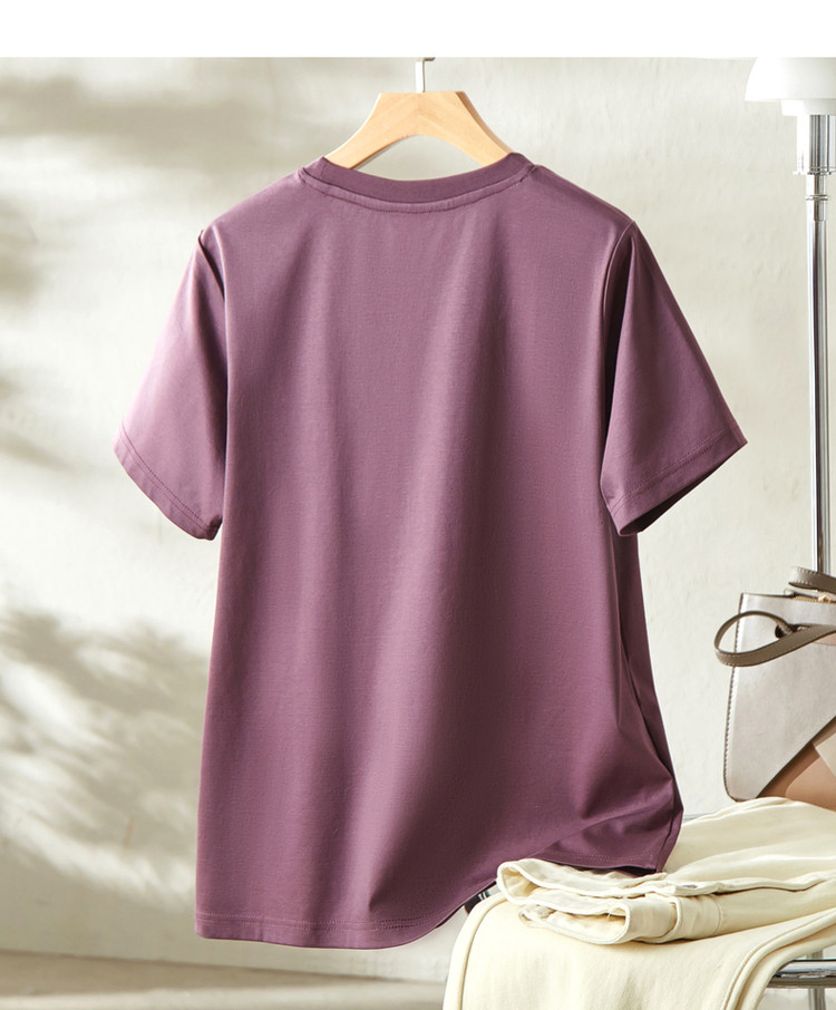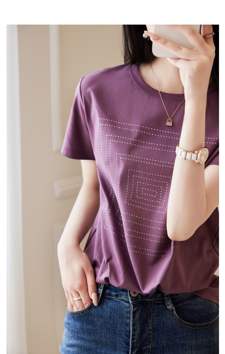 商品名称:【乌梅子酱】夏呼吸感丝光棉纯棉短袖t恤女高清印花遮肉女式t恤 248193