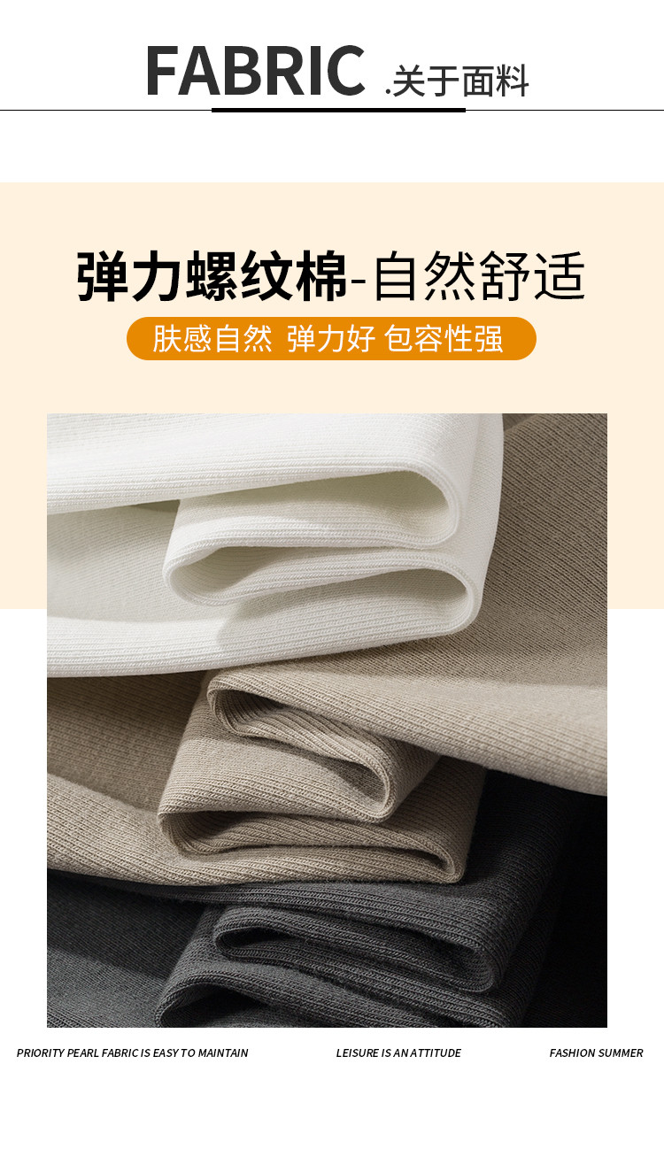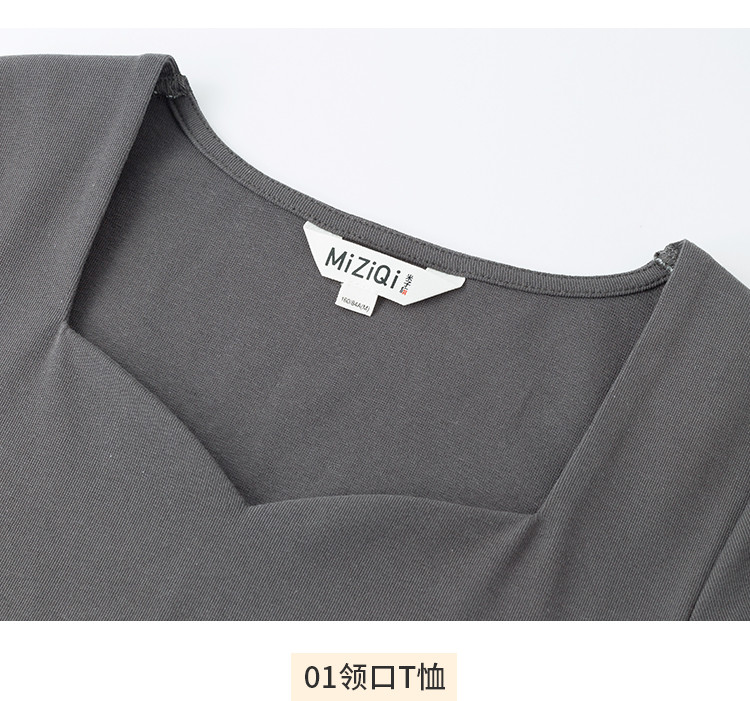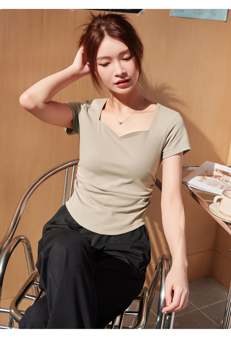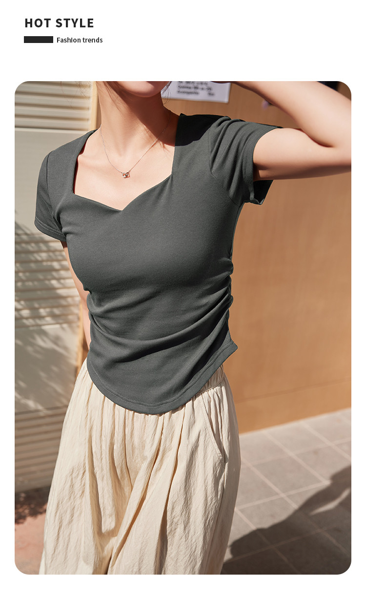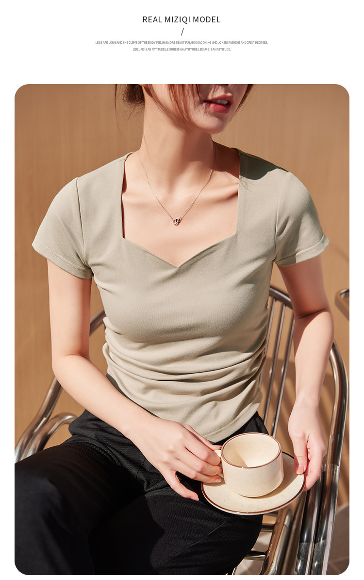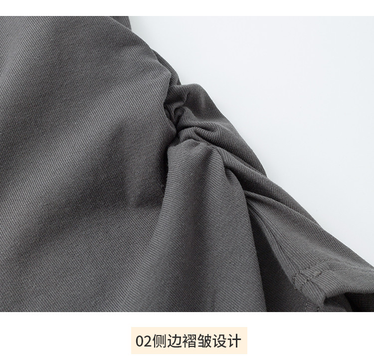 米子旗夏季款纯色T恤女侧边褶皱修身短袖上衣 147802