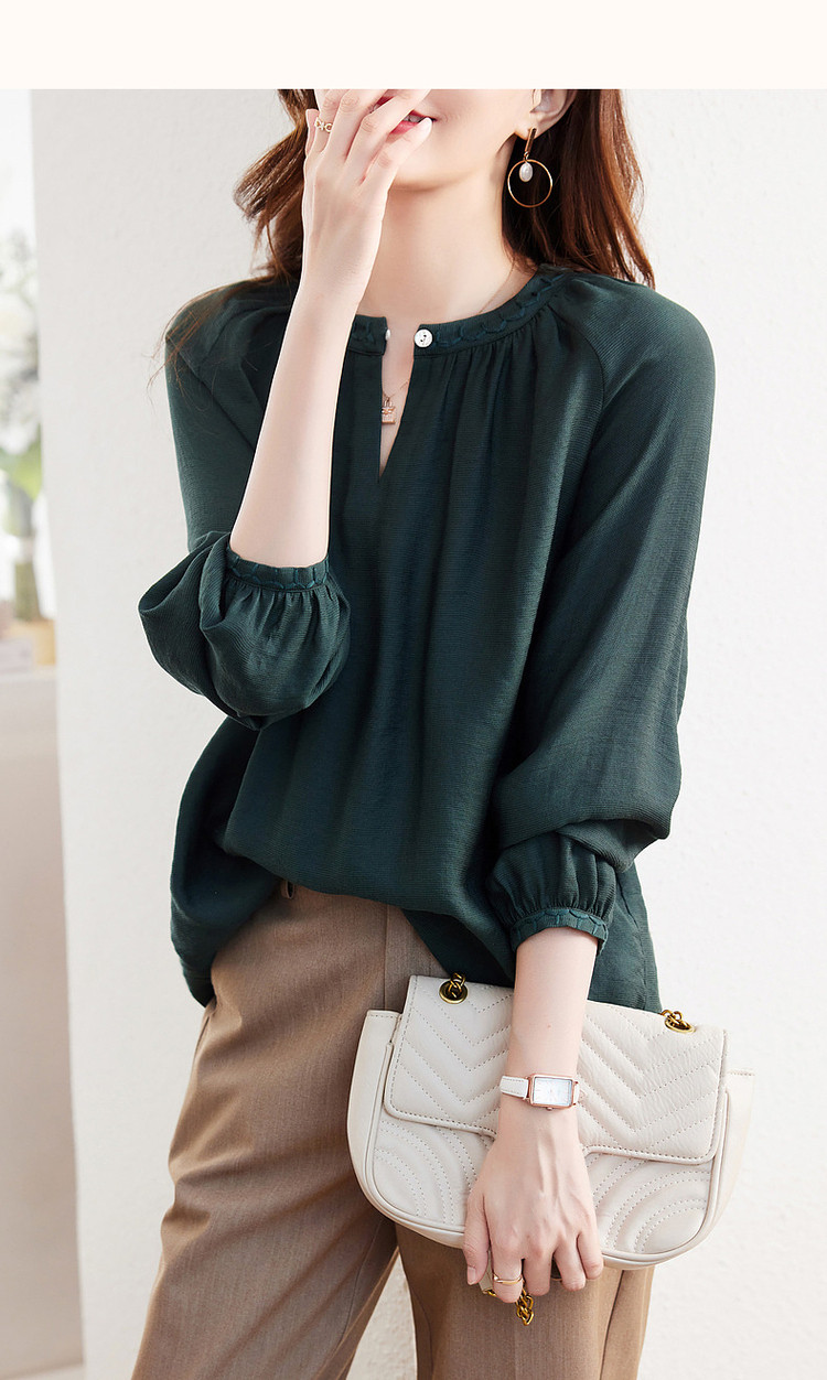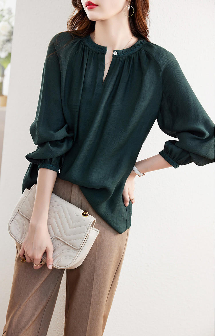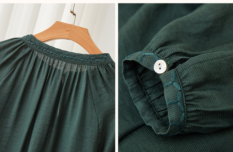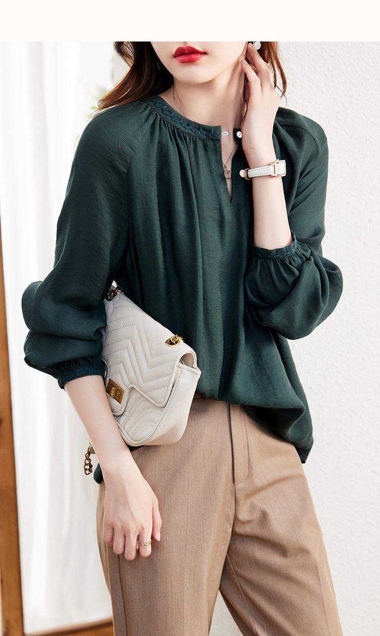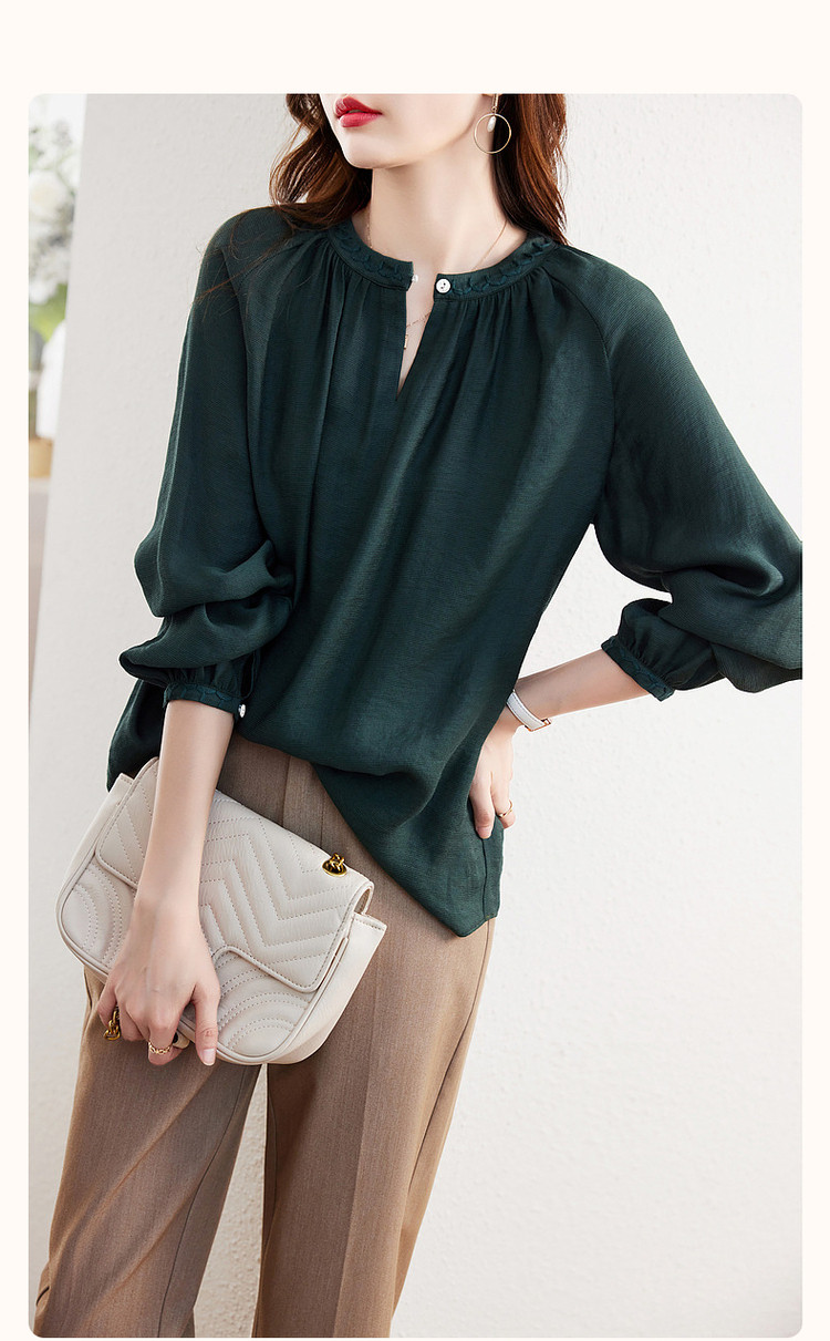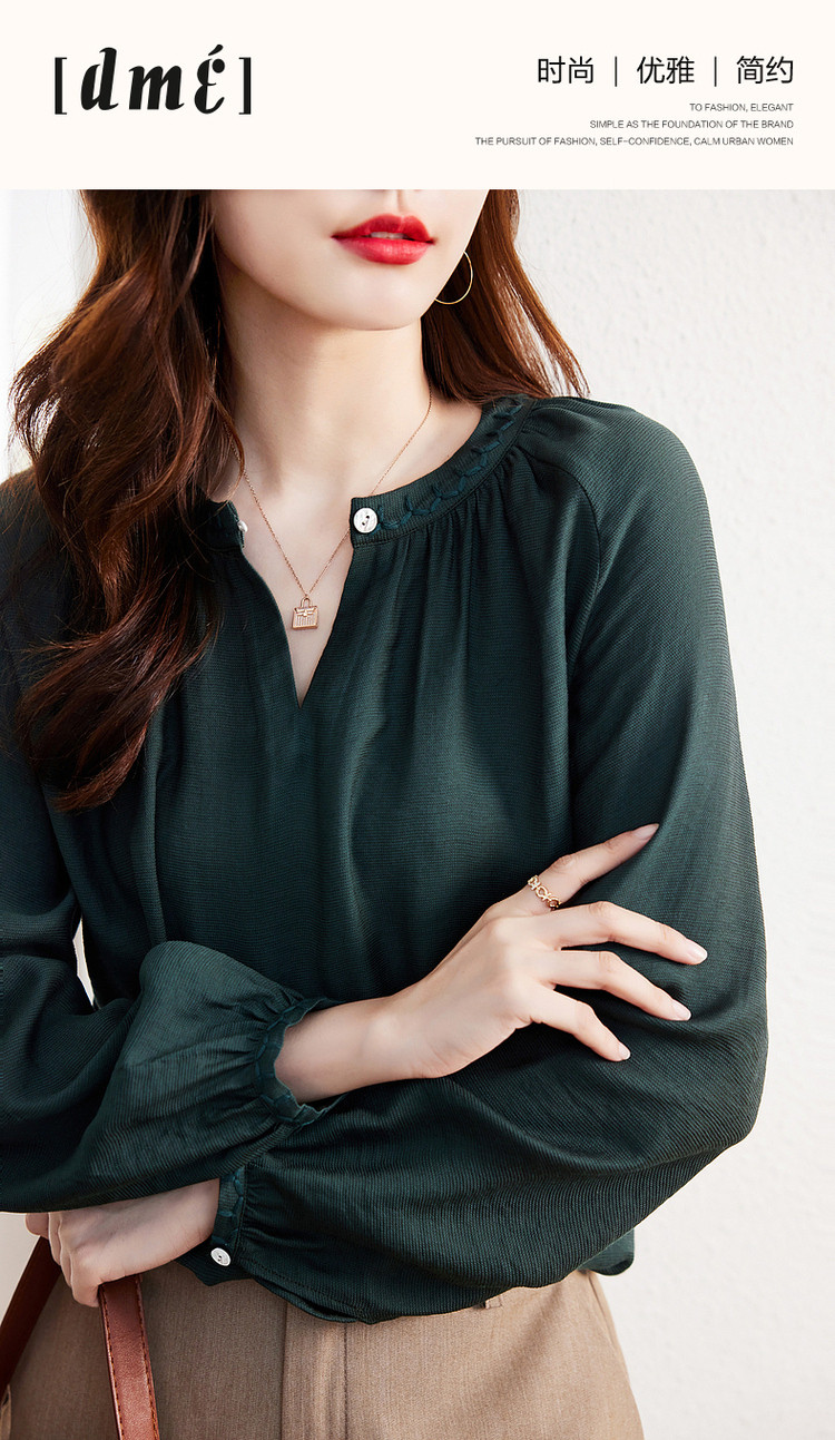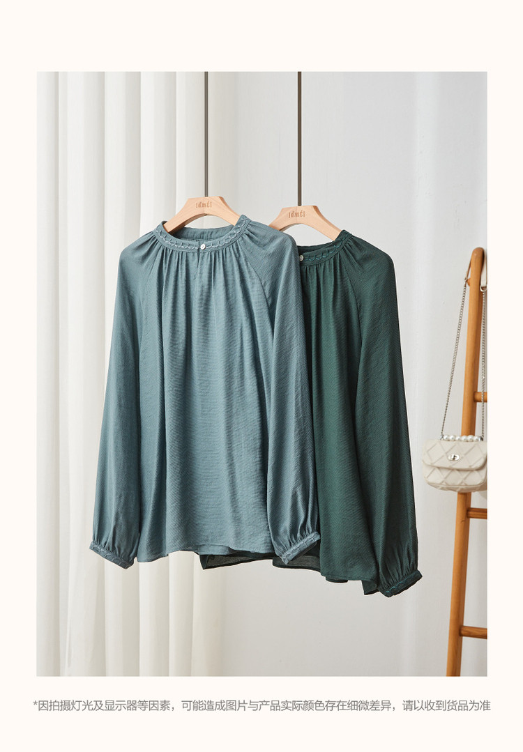 商品名称:【职场lady】春秋复古优雅刺绣立领长袖衬衫舒弹衬衣女装上衣 064065