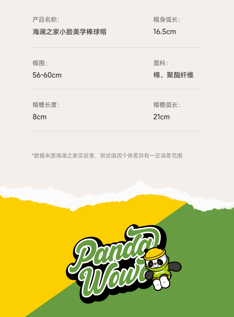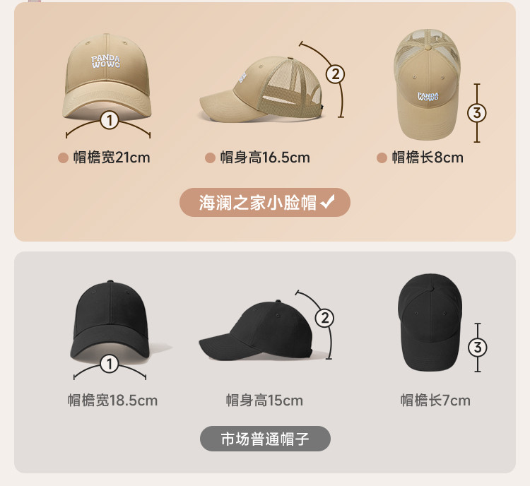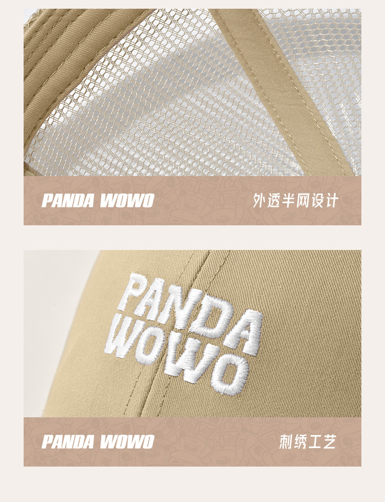 商品名称:panda wowo系列棒球帽子女男情侣户外显脸小透气休闲夏 992022