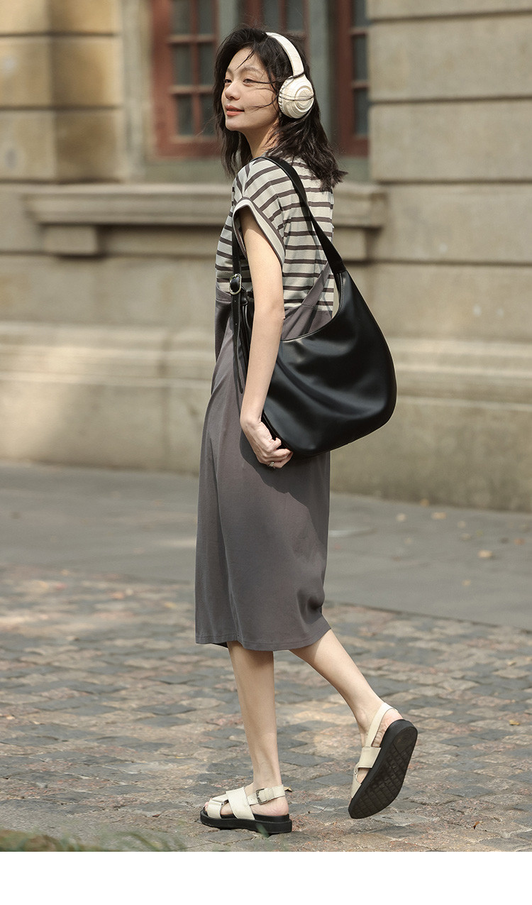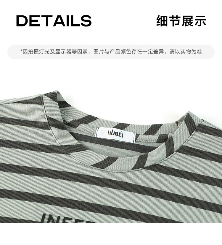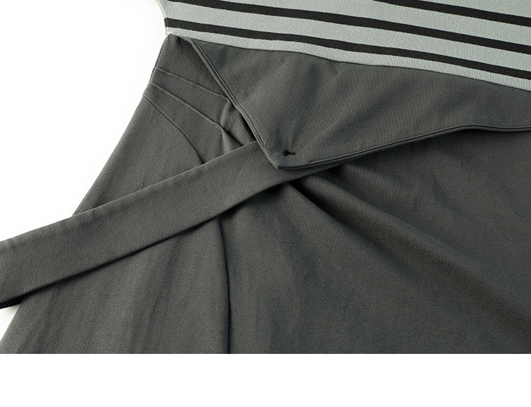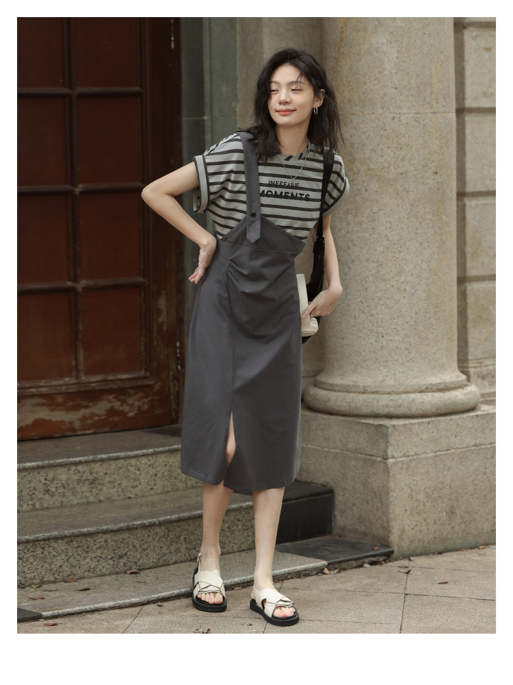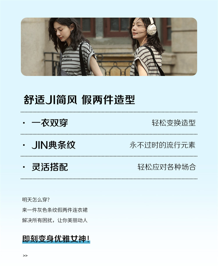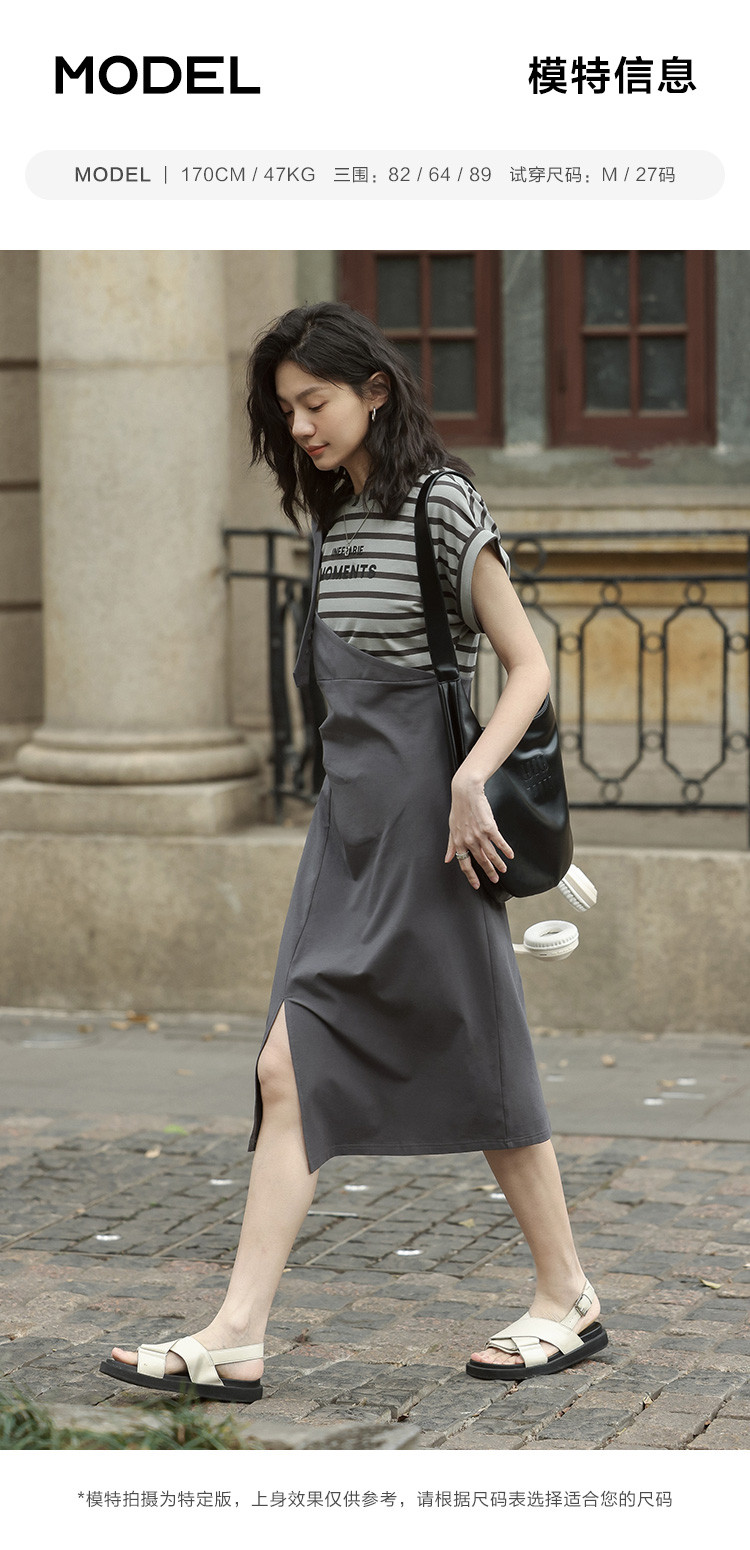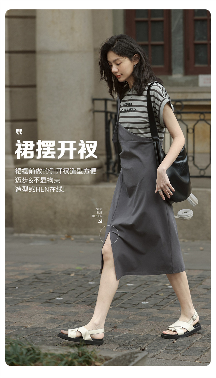 商品名称:【假两件条纹上衣中长裙】夏款圆领套头印花开叉连衣裙 641154