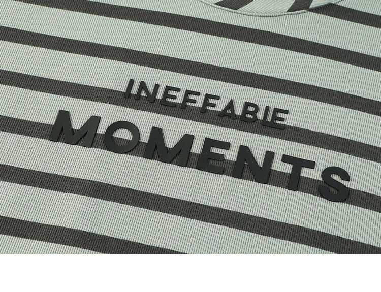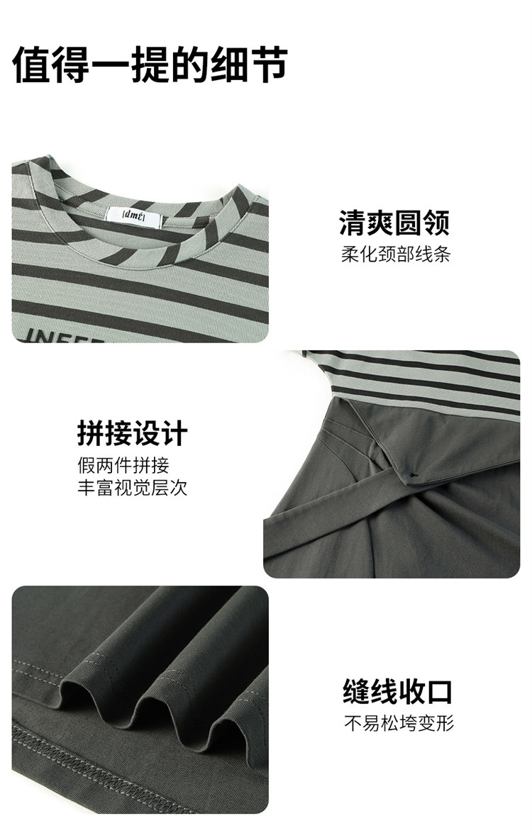 【假两件条纹上衣中长裙】夏款圆领套头印花开叉连衣裙 641154