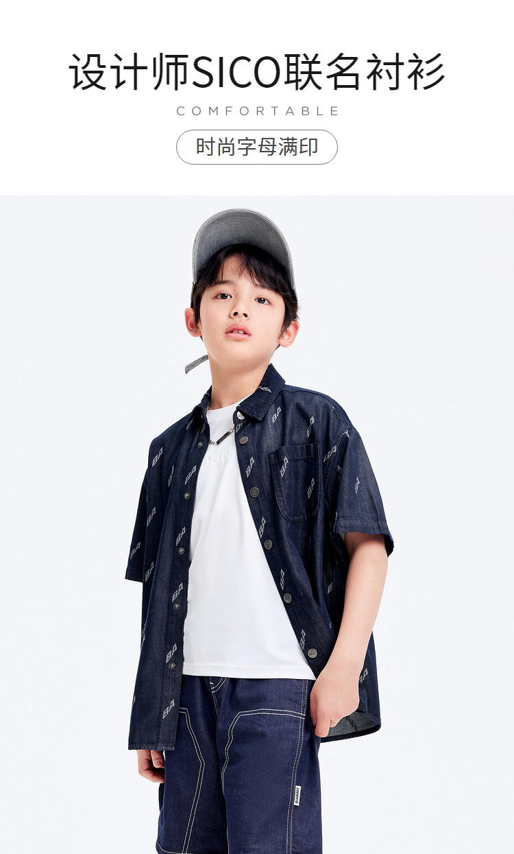 商品名称:【设计师SICO IP】巴拉巴拉儿童衬衫男童衬衣夏季短袖牛仔 586309