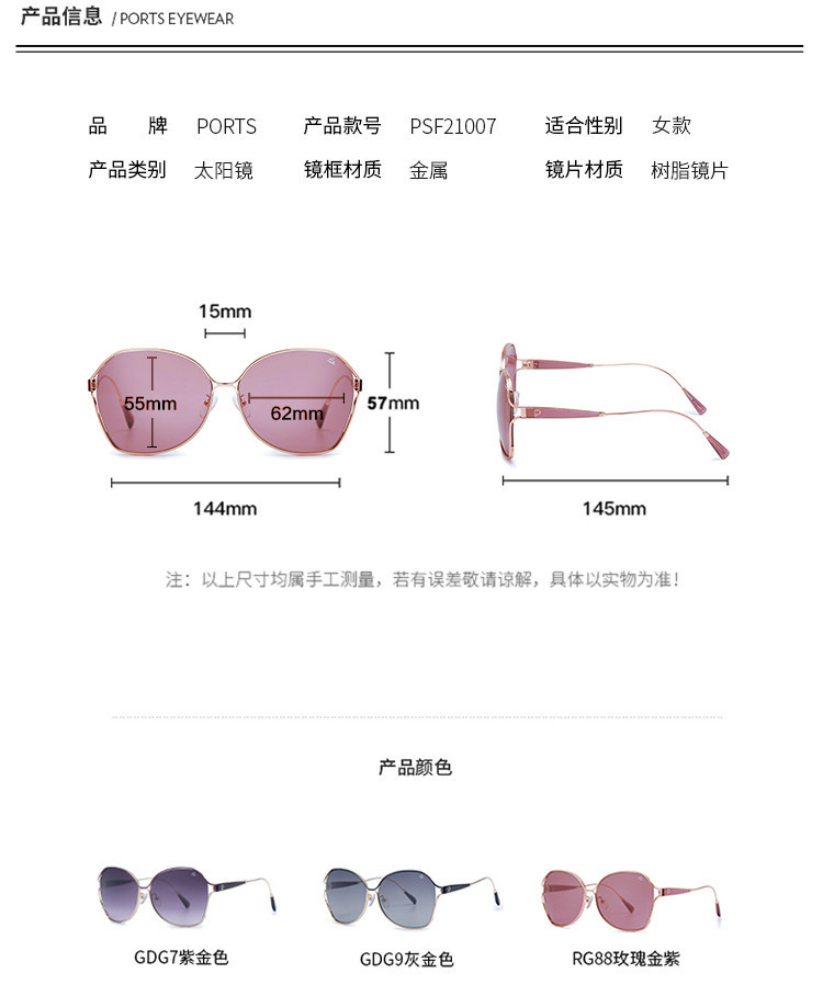 商品名称:PORTS时尚女款镂空金属潮流太阳镜PSF21007 809290