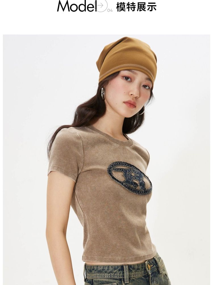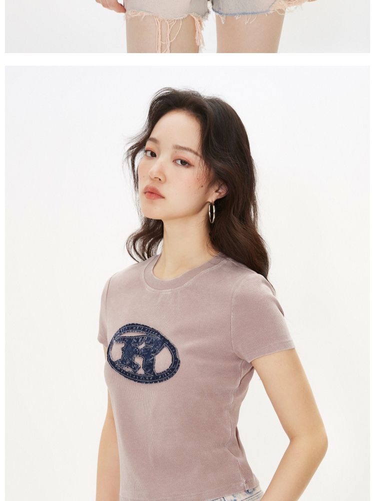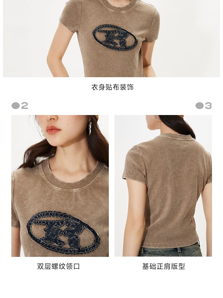 商品名称:【正肩版型】夏季修身圆领短款短袖正肩T恤女 524570