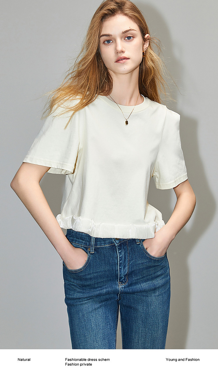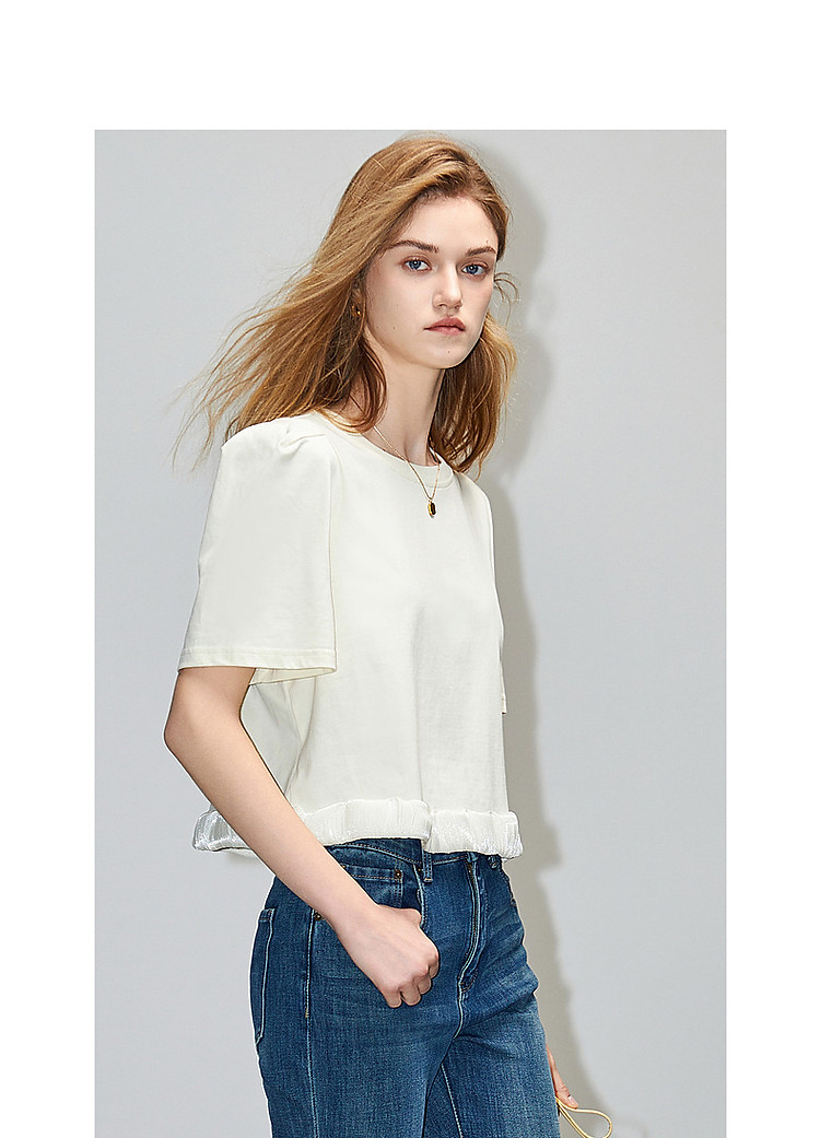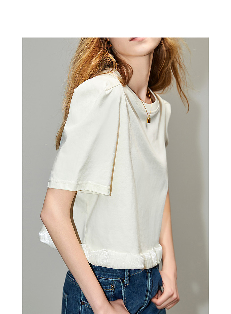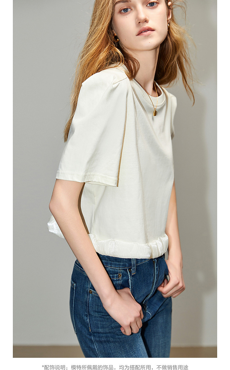 【基础纯色短T】夏简约洋气设计感正肩休闲通勤显瘦短袖 403970