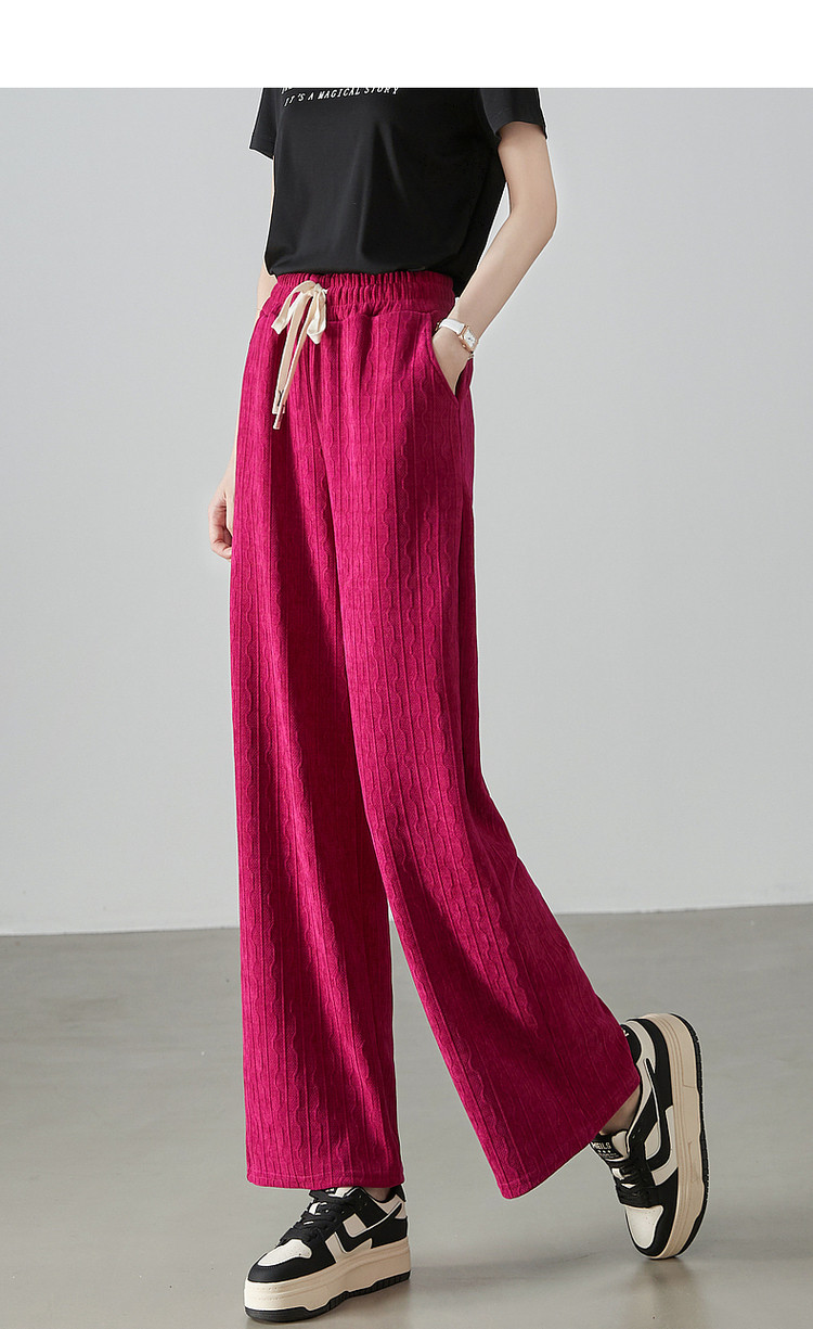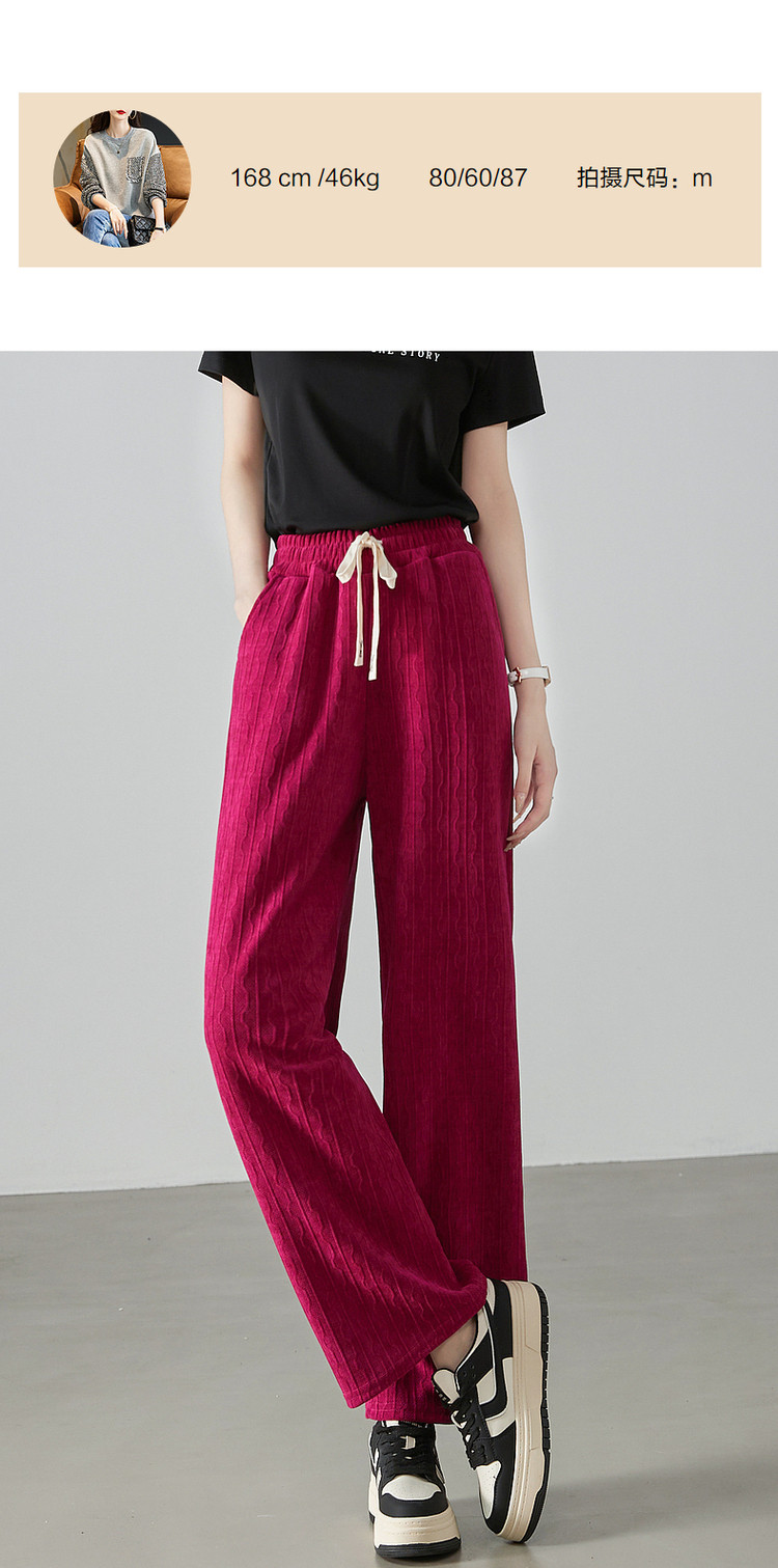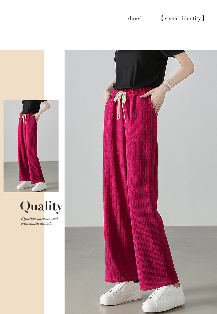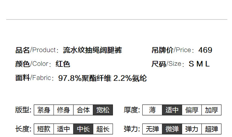 商品名称:【流水纹抽绳阔腿裤】秋中腰宽松微弹长裤系绳女式休闲裤 291265