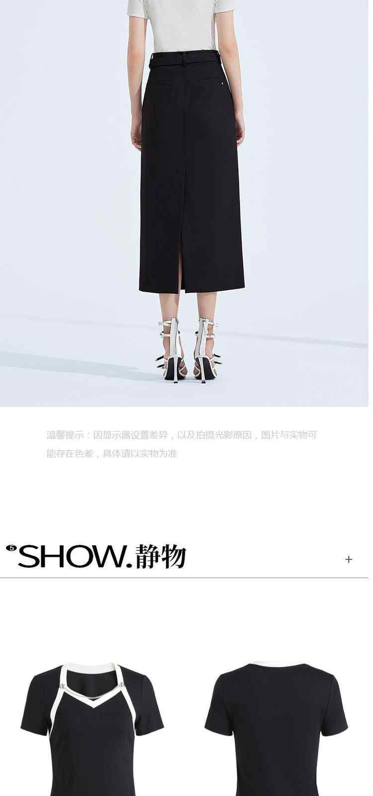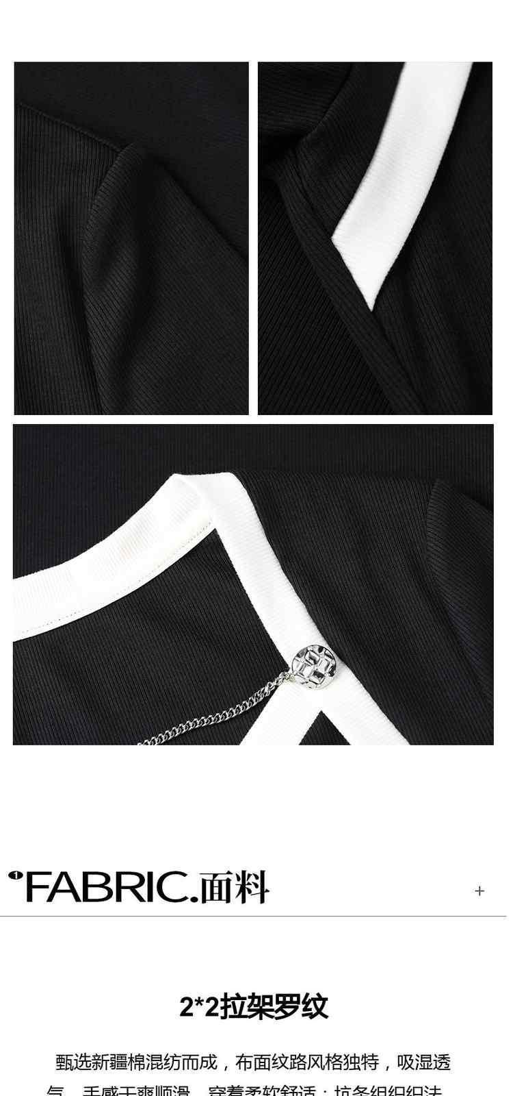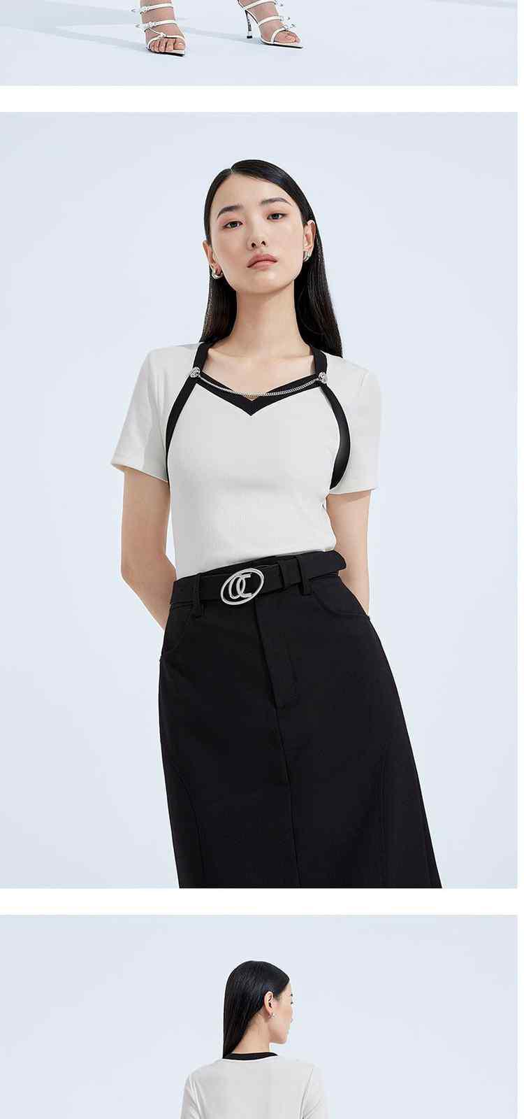 商品名称:黑标系列 春装饰链鸡心领撞边t恤短袖针织衫女 469647