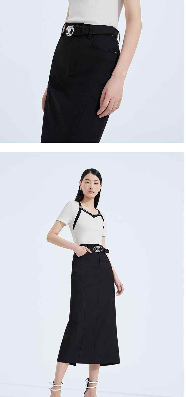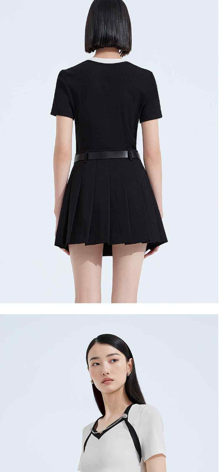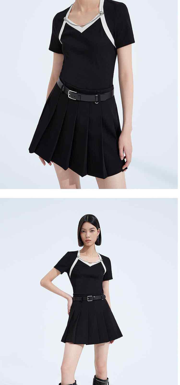 商品名称:黑标系列 春装饰链鸡心领撞边t恤短袖针织衫女 469647