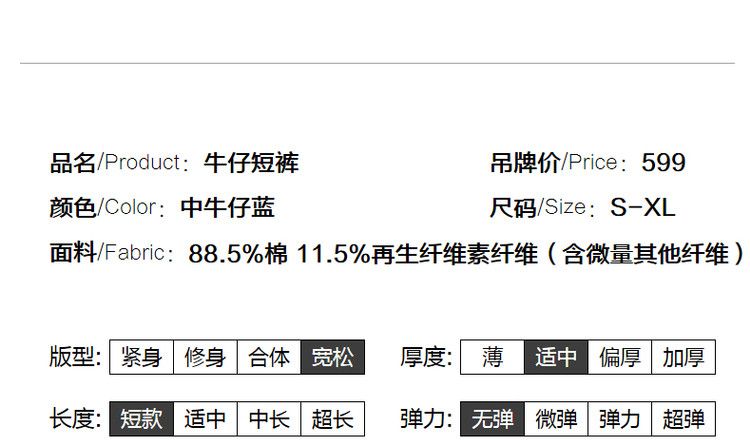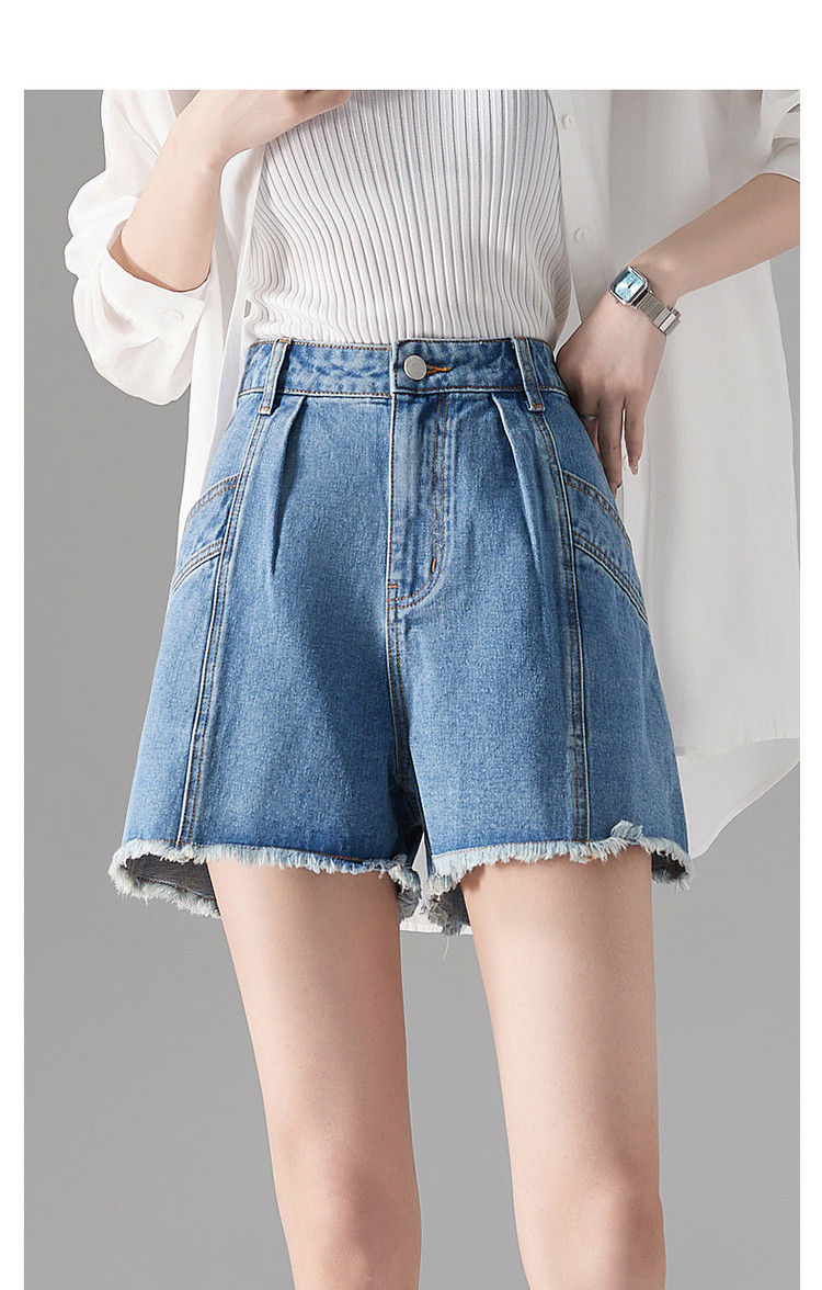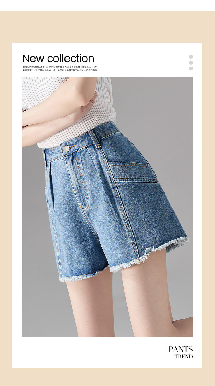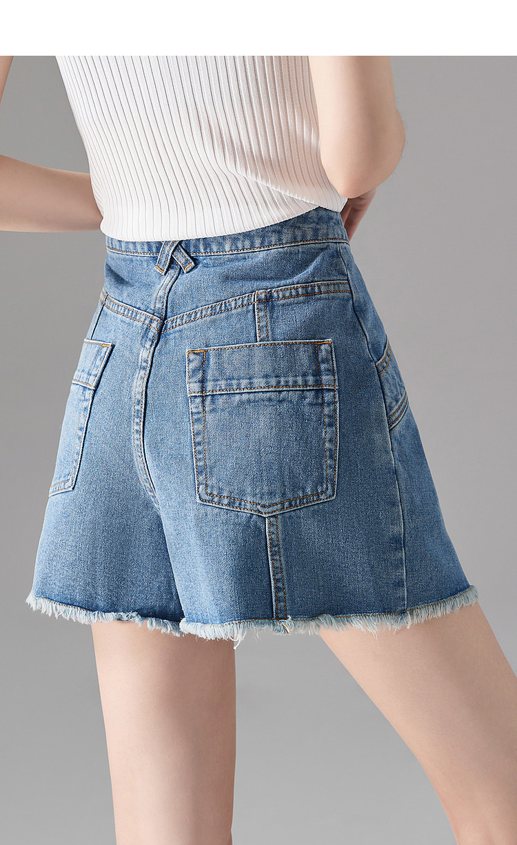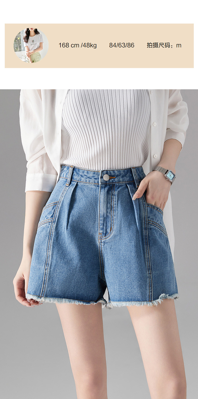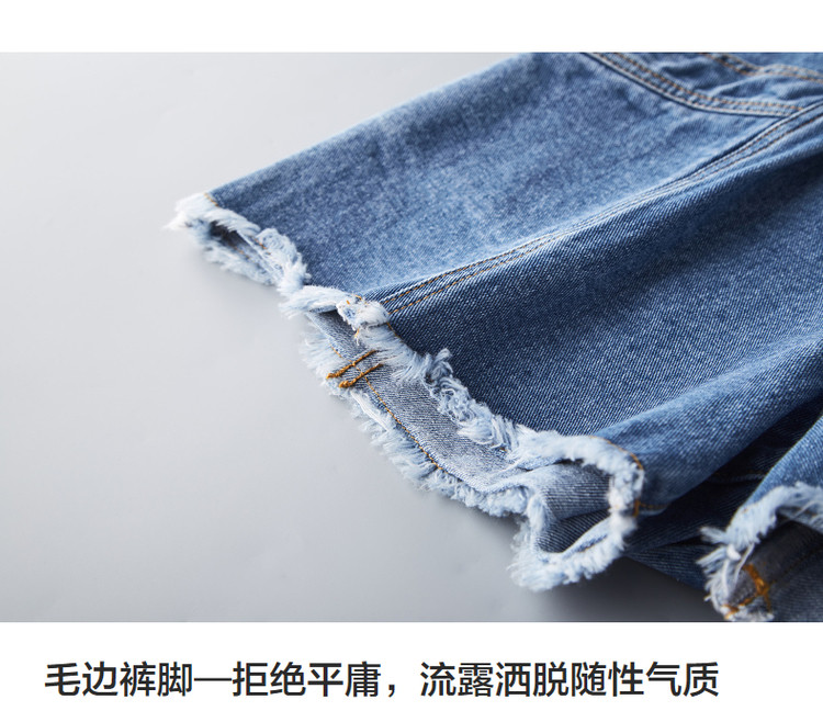 商品名称:【秒变竹竿腿】夏季休闲清新毛边裸感显瘦牛仔喇叭裤子女短裤 000065