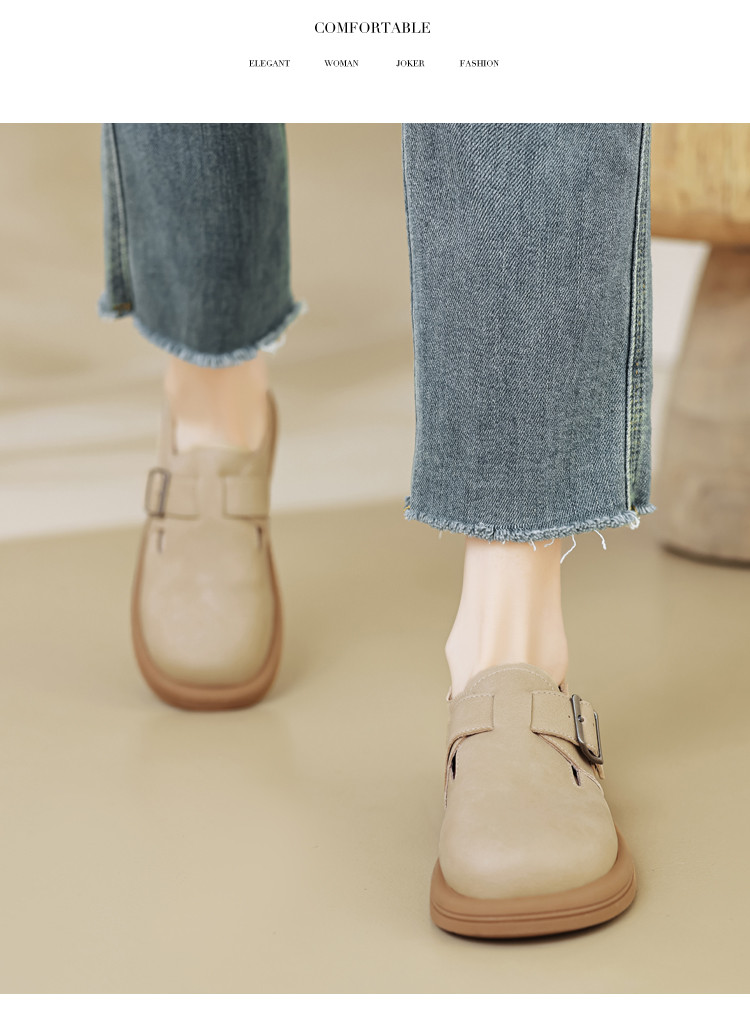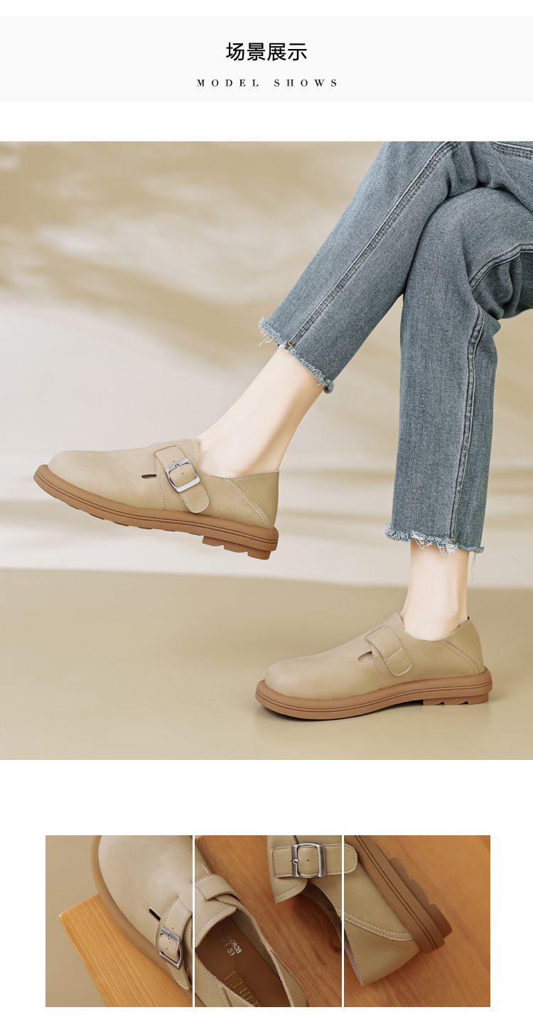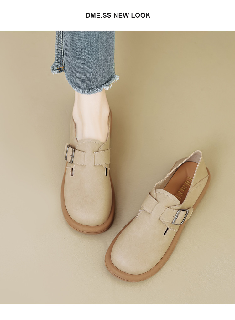 春夏潮流复古百搭圆头纯色软面日常通勤勃肯鞋女单鞋 474753