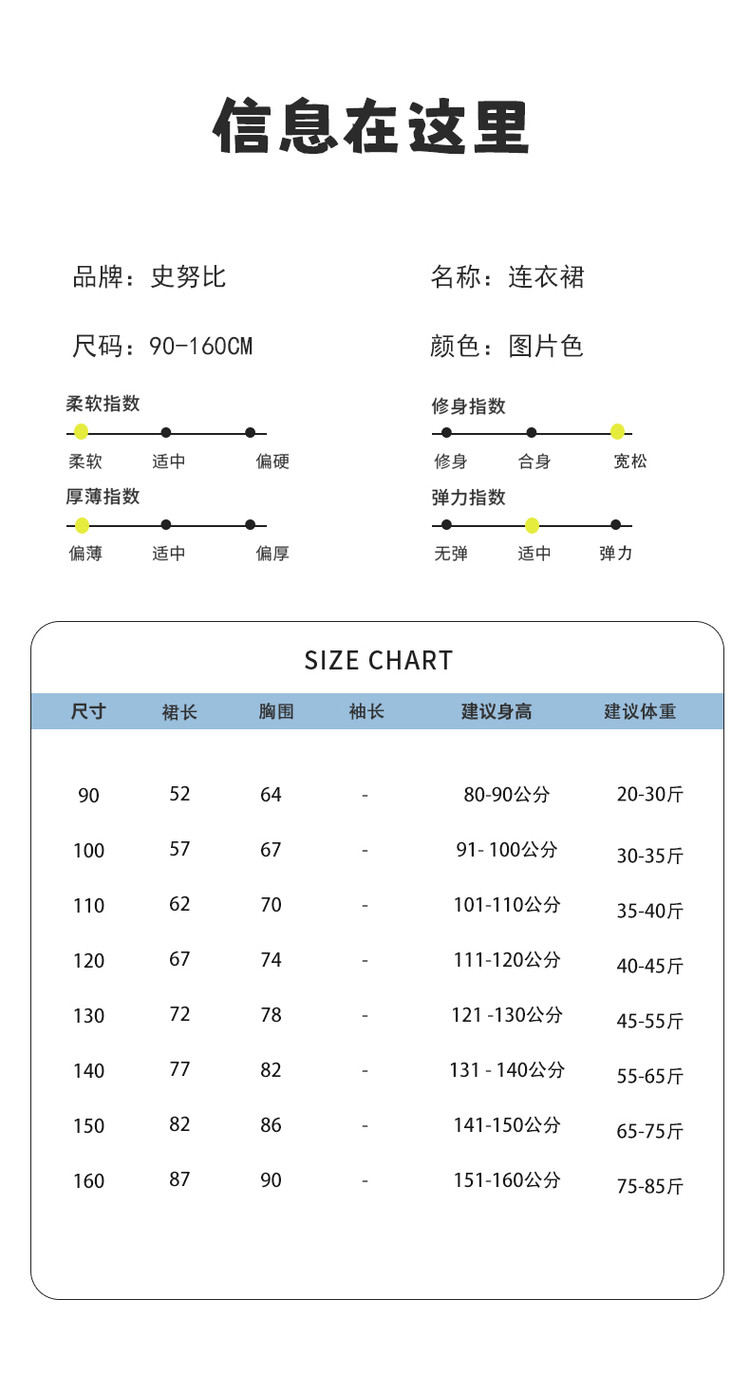 商品名称:【夏季无袖连衣裙】史努比中小童童装舒适百搭女宝宝柔软透气裙子 474527