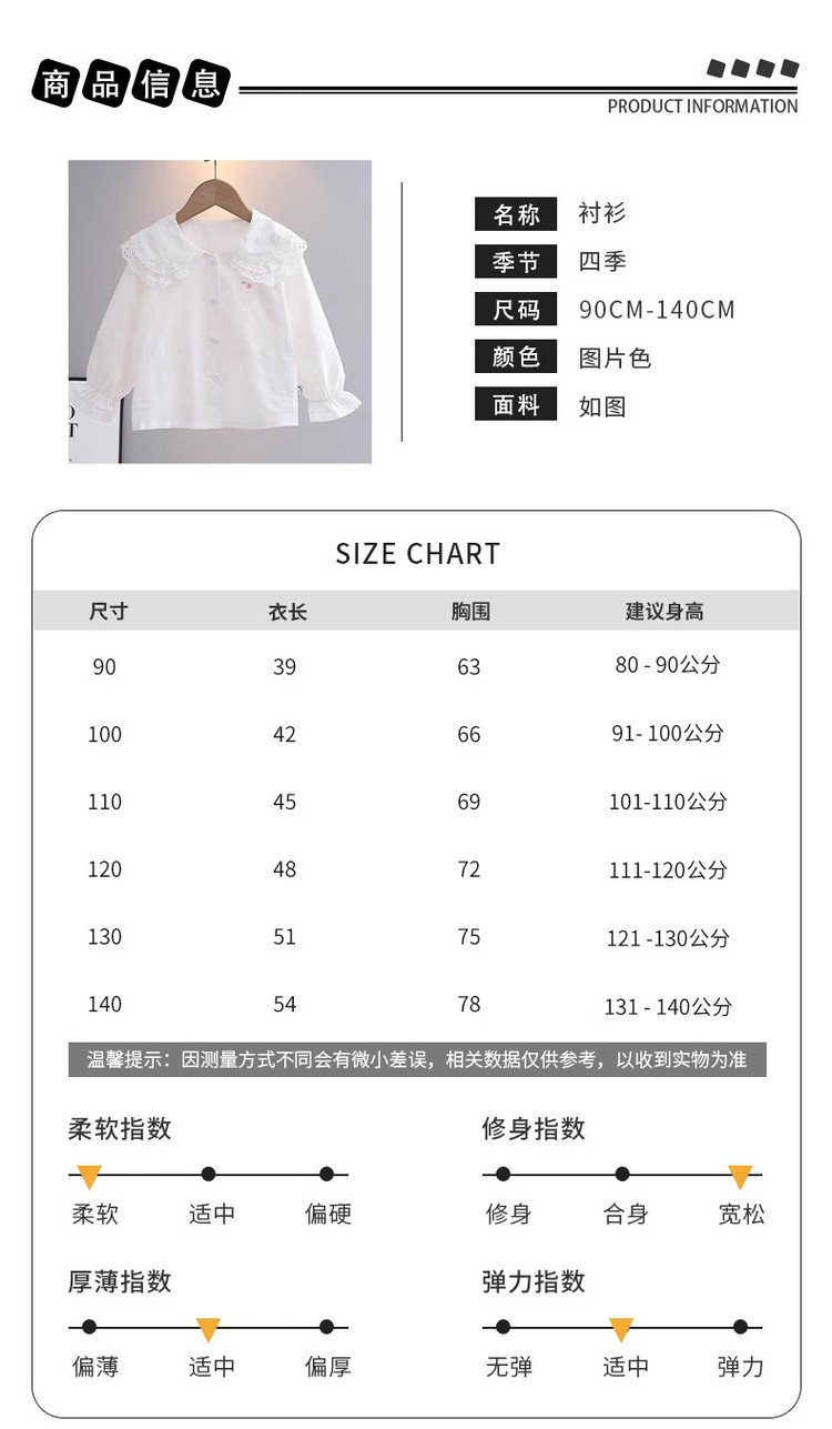商品名称:【甜美女童衬衫】史努比春秋款中小童娃娃领女宝宝纯棉舒适百搭 075679