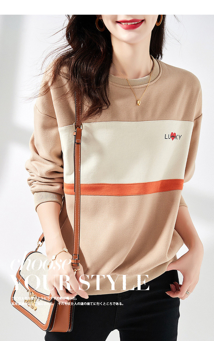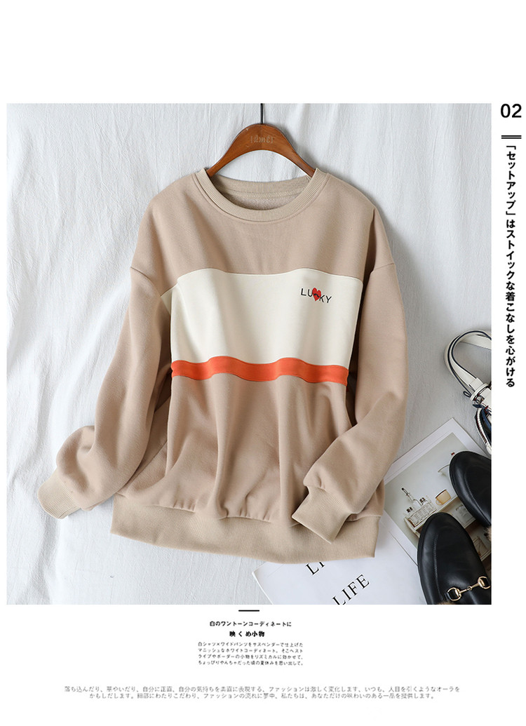 【爱心印花】春秋圆领色块拼接宽松卫衣女春秋 158273