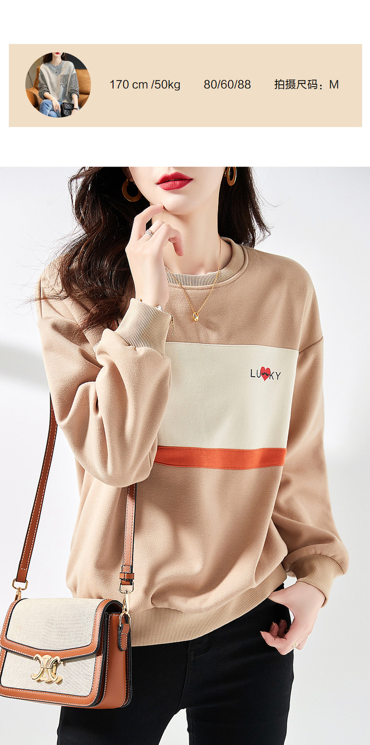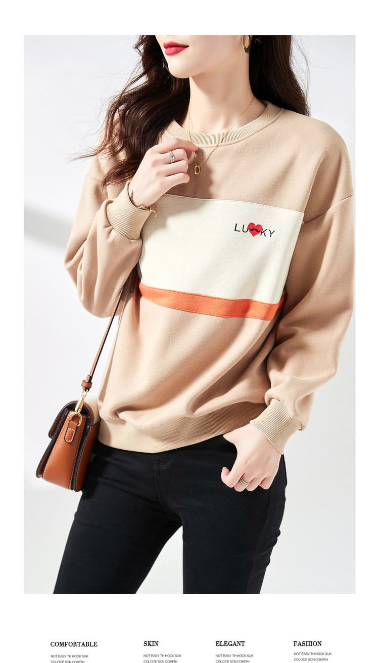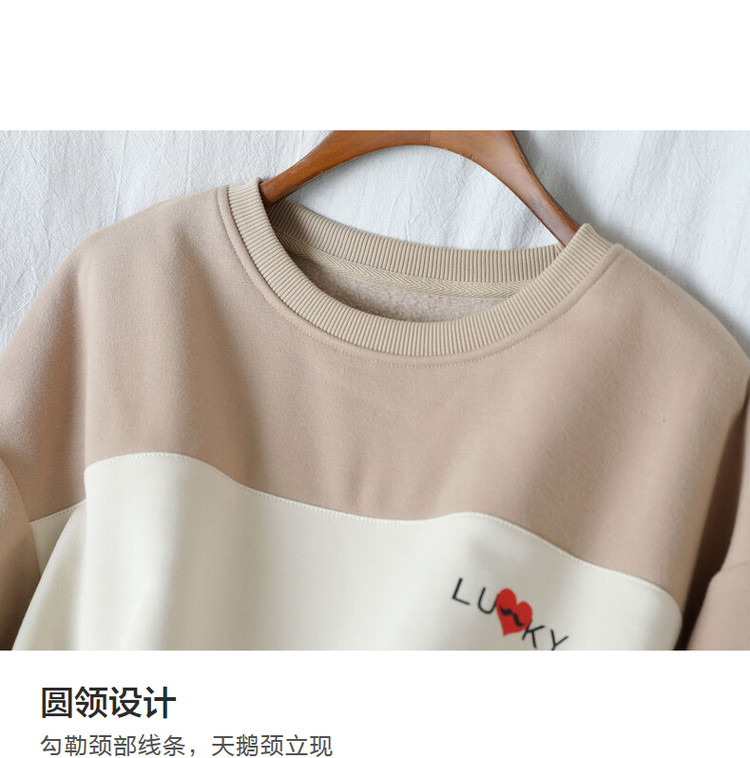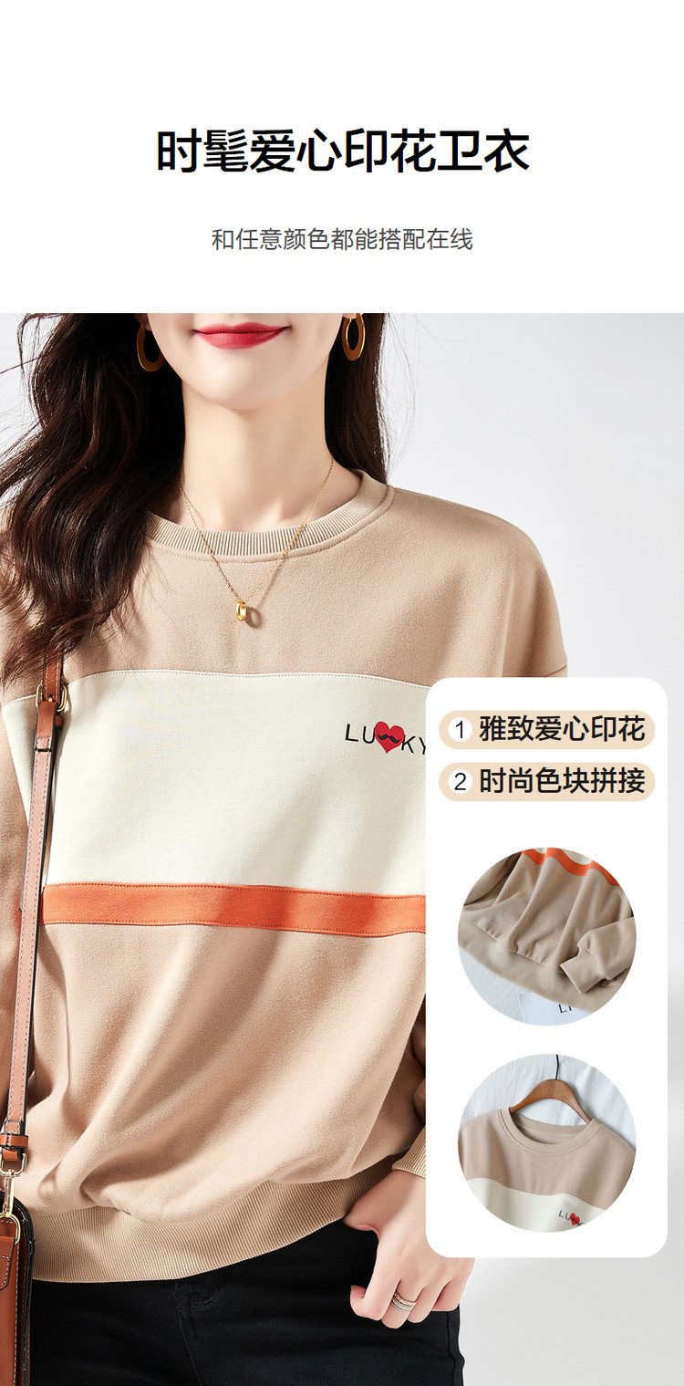 商品名称:【爱心印花】春秋圆领色块拼接宽松卫衣女春秋 158273
