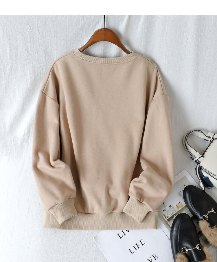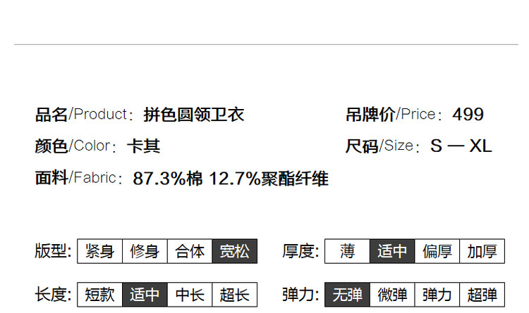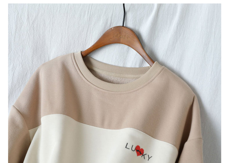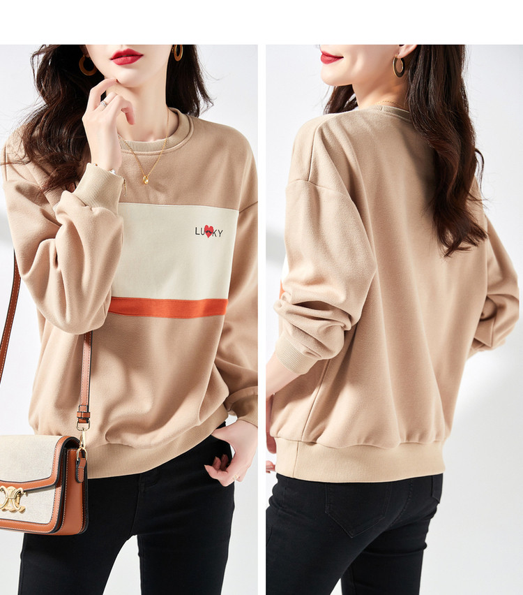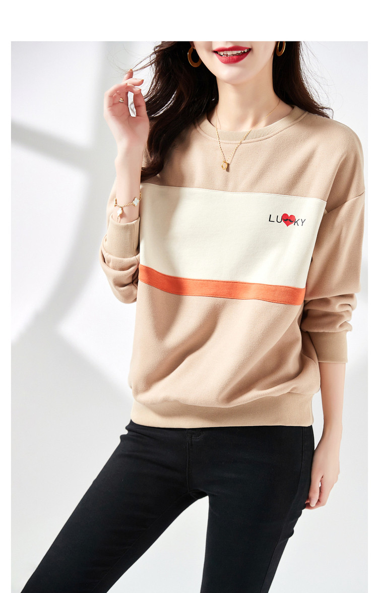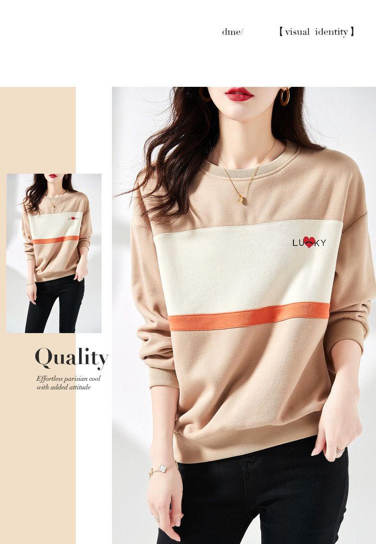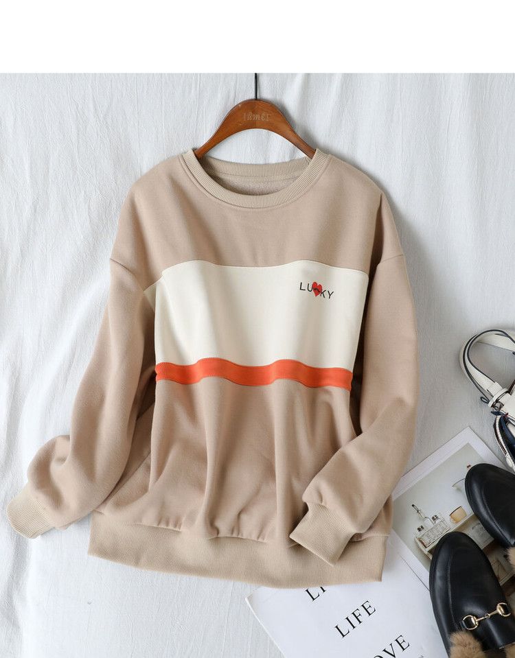 商品名称:【爱心印花】春秋圆领色块拼接宽松卫衣女春秋 158273