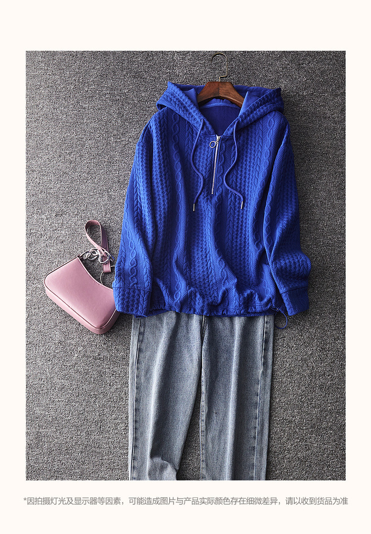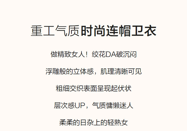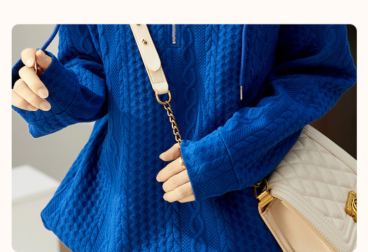 商品名称:【立体绞花卫衣】春秋季连帽落肩长袖微弹几何女式卫衣 031873