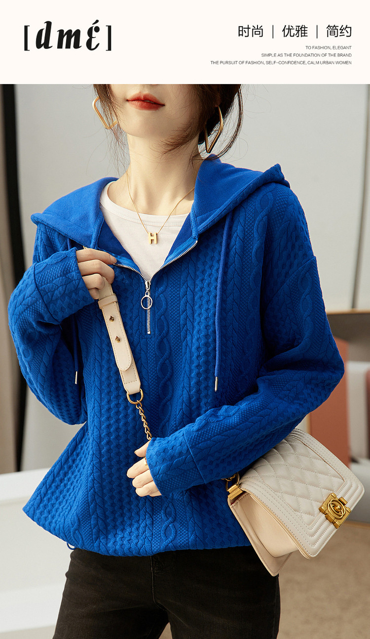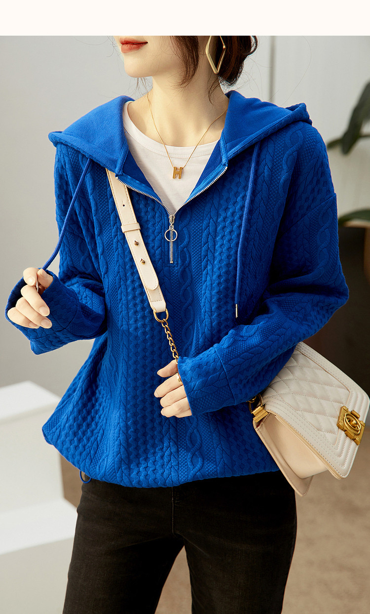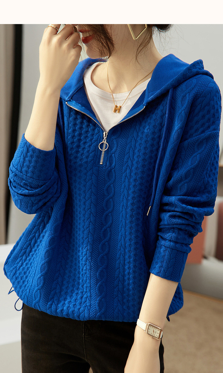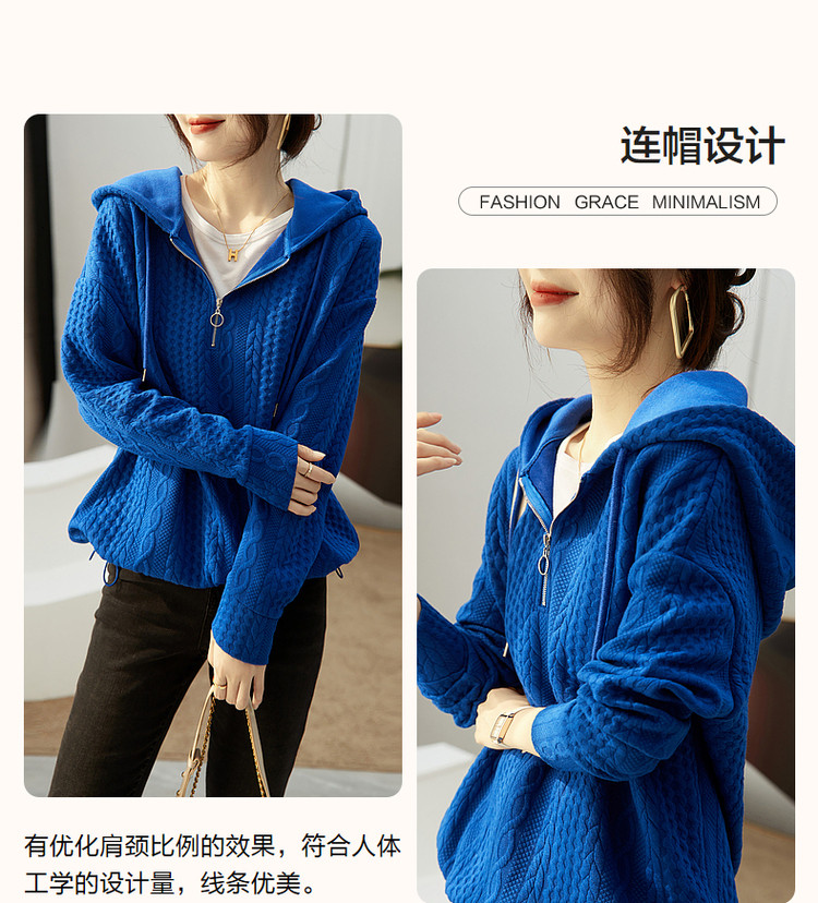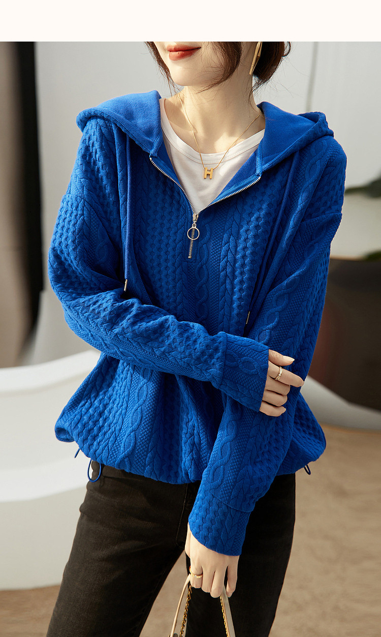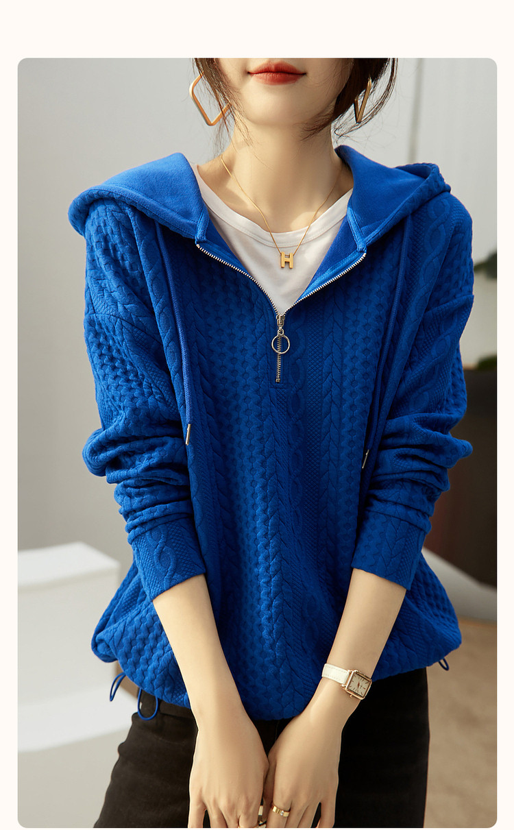 【立体绞花卫衣】春秋季连帽落肩长袖微弹几何女式卫衣 031873