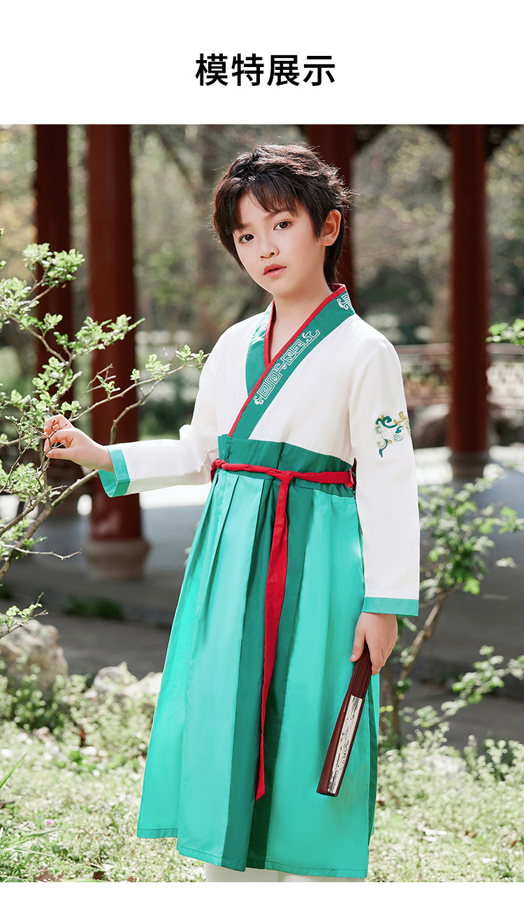 商品名称:【国风刺绣长袍】中秋新中式男童汉服儿童纯棉古装长袍中大童汉服 833304