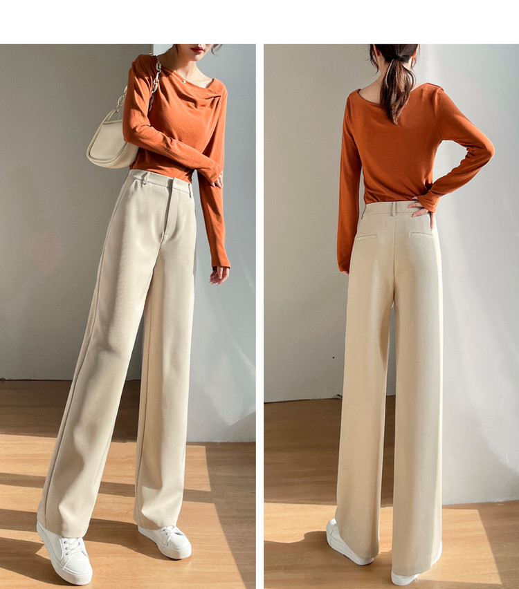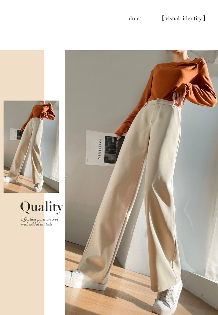 商品名称:【洒脱风度】春季静奢通勤高腰直筒西装裤藏肉窄版女式阔腿休闲裤 126657