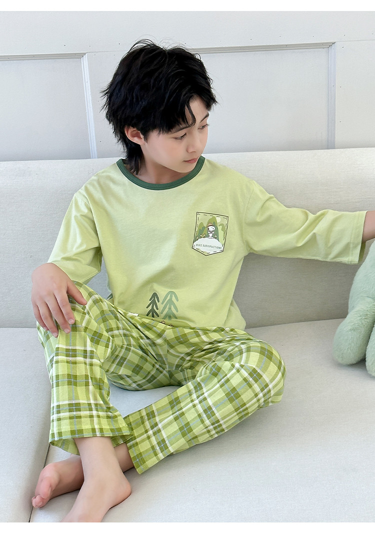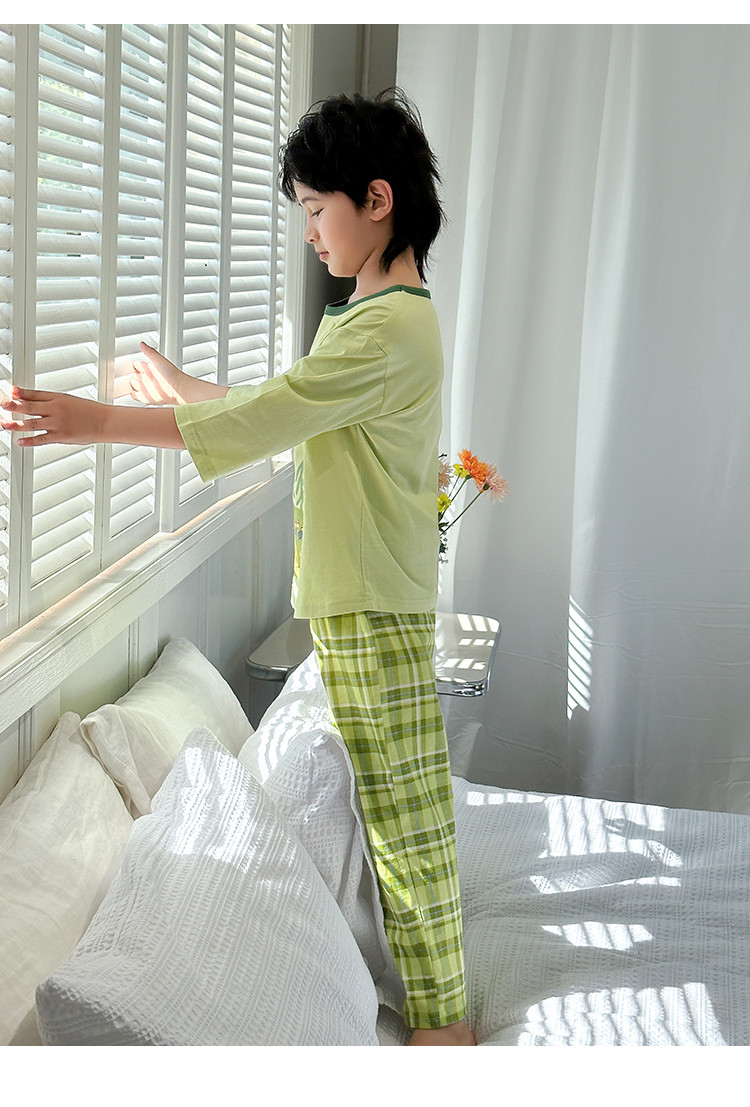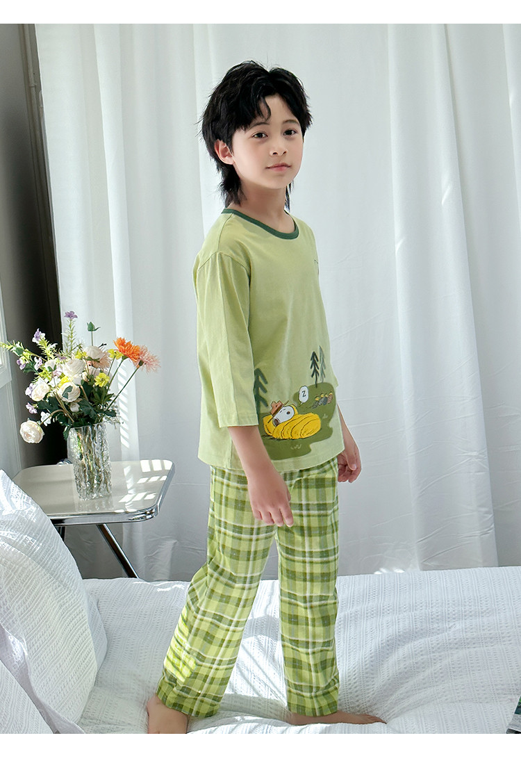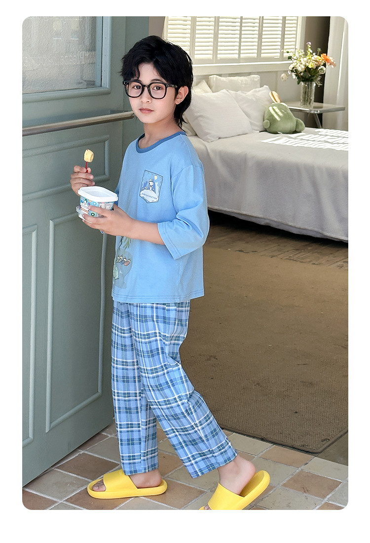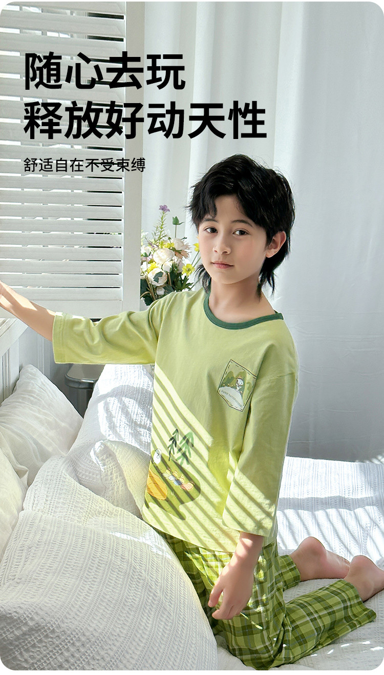 【舒适家居套】25新款男童家居服透气中大童落肩短袖长裤两件套 431896