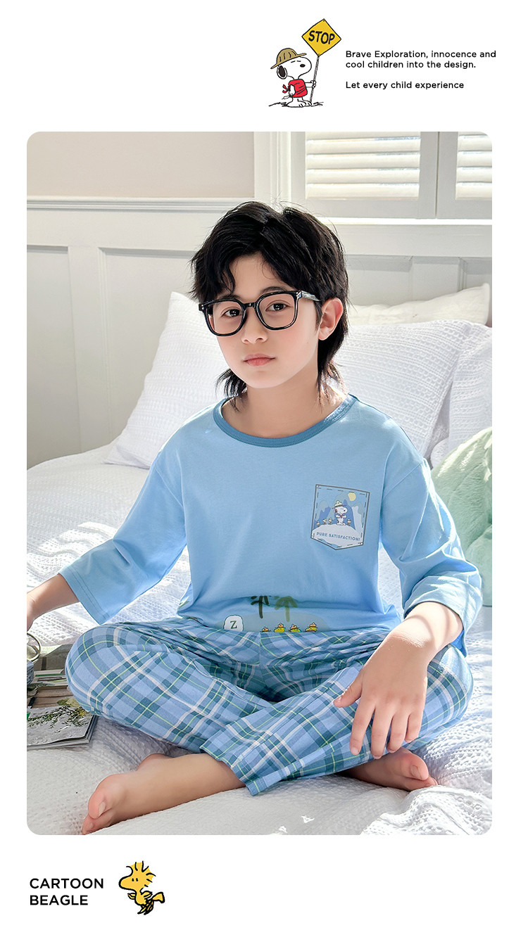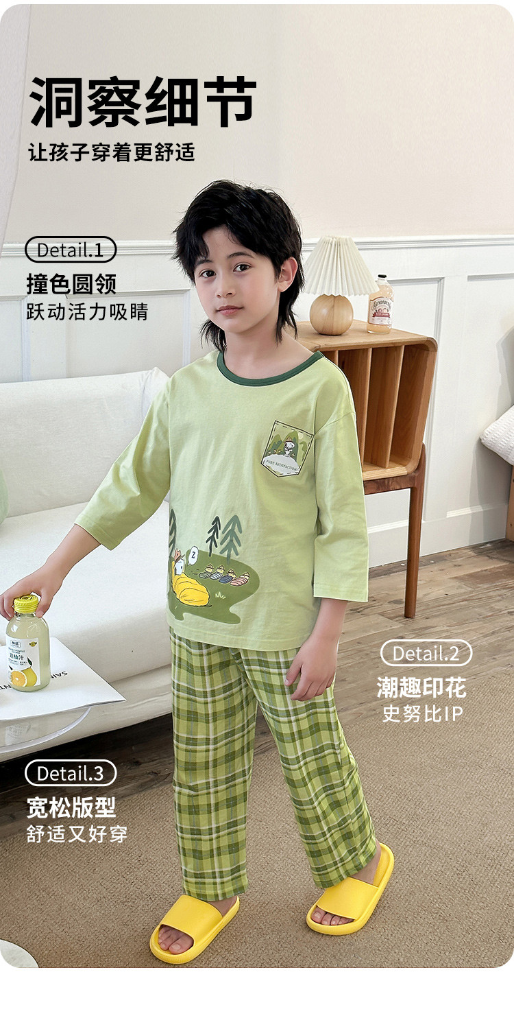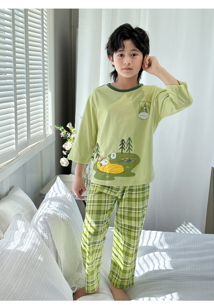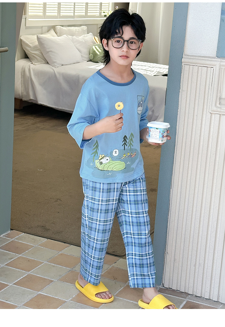 【舒适家居套】25新款男童家居服透气中大童落肩短袖长裤两件套 431896