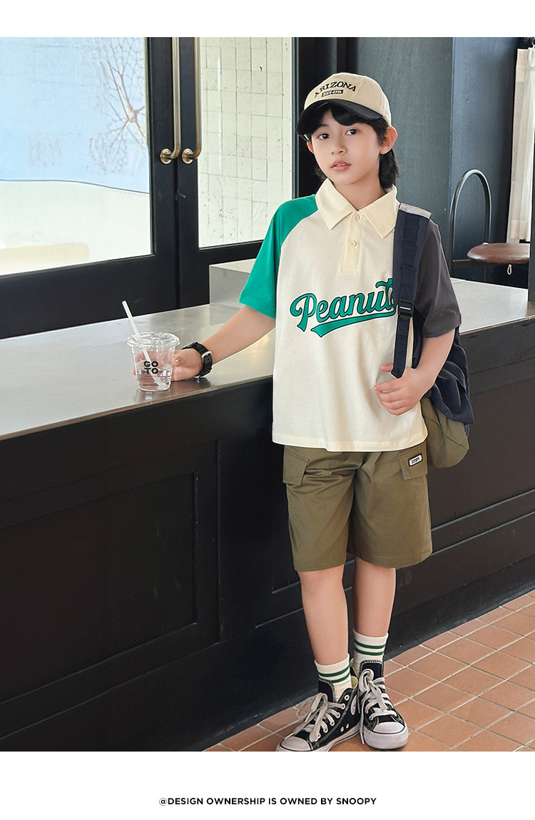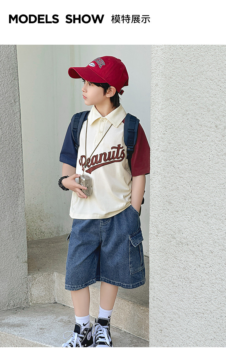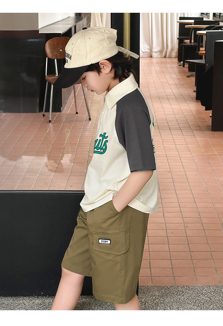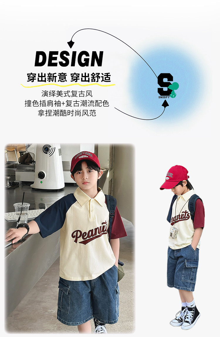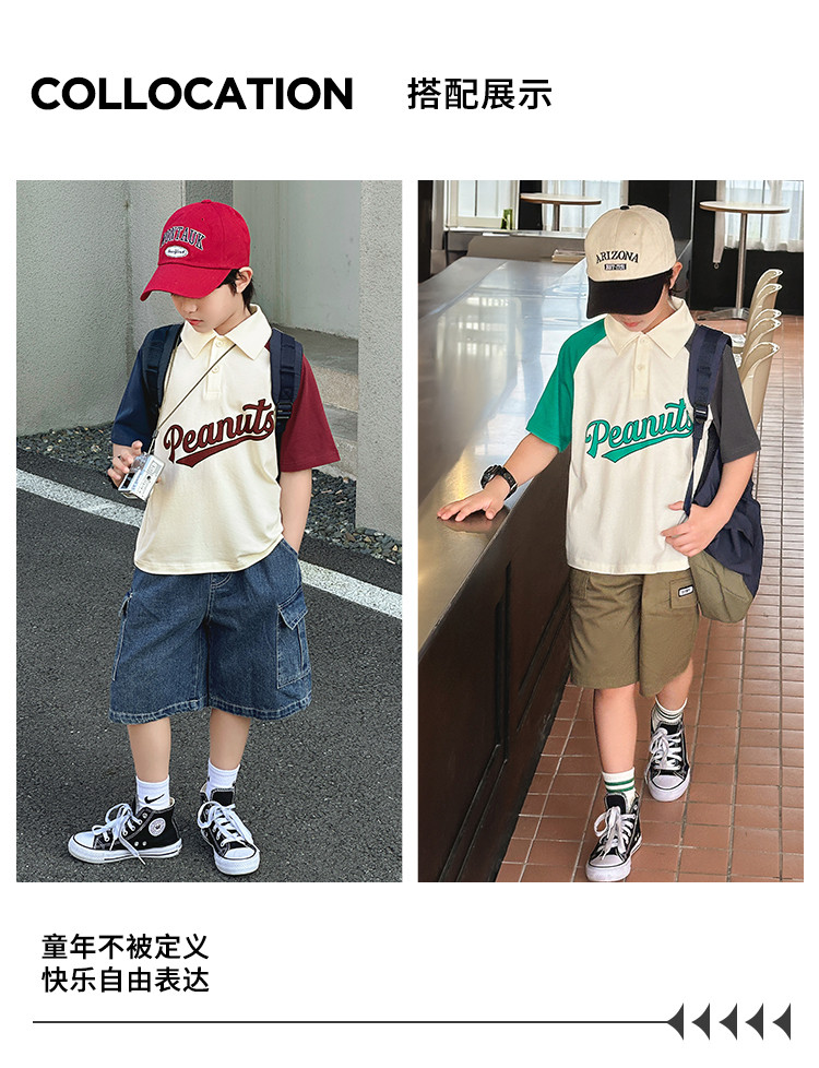 商品名称:【撞色插肩袖POLO衫】夏季中大童休闲上衣翻领T恤男童短袖 499224