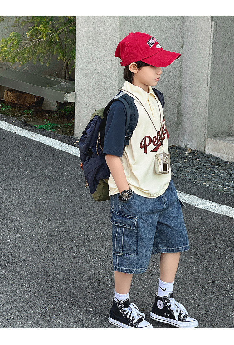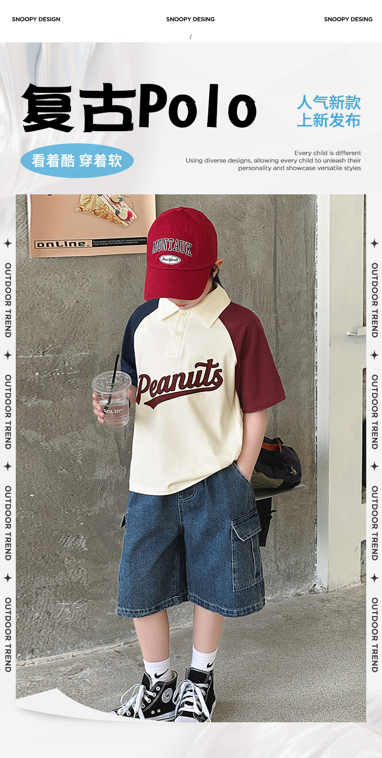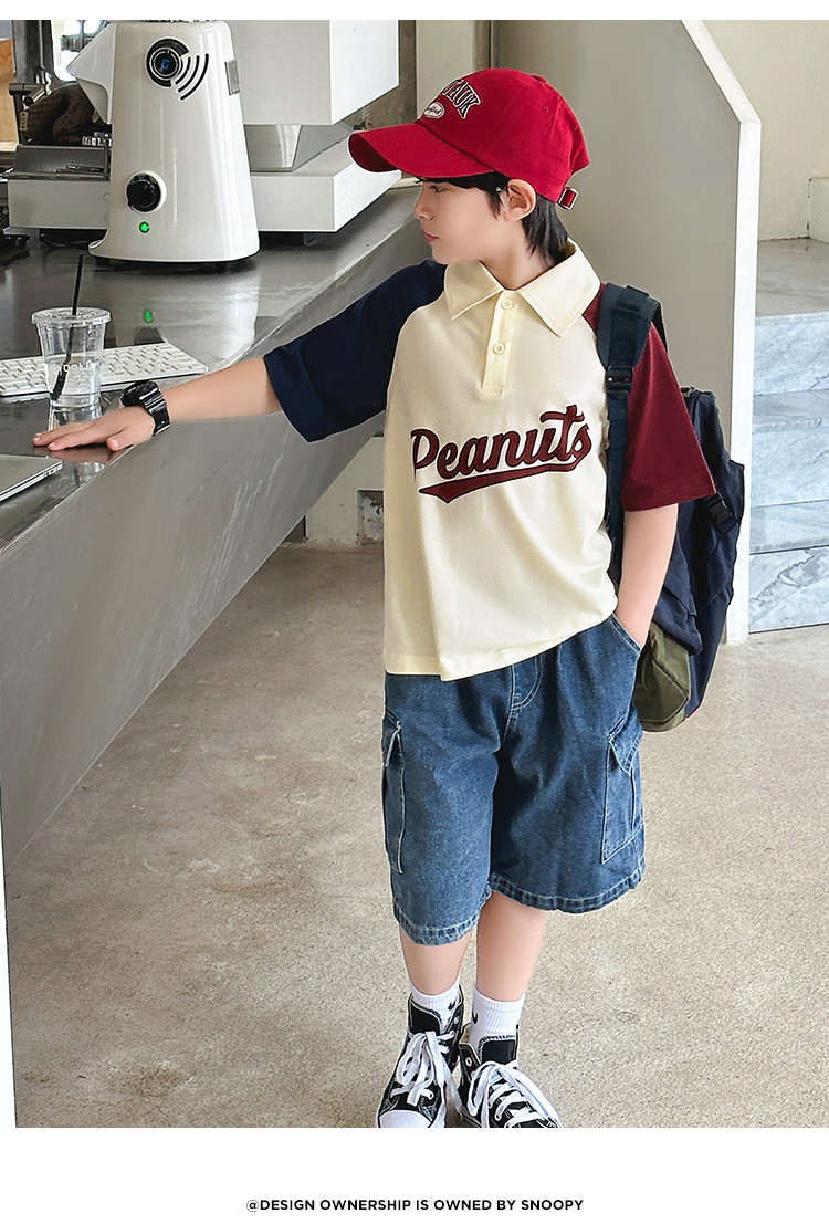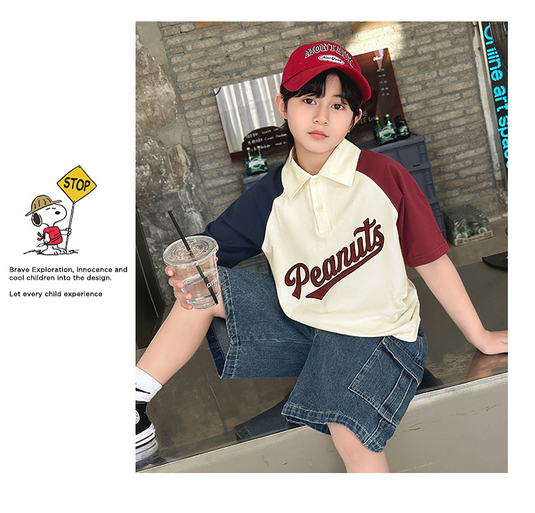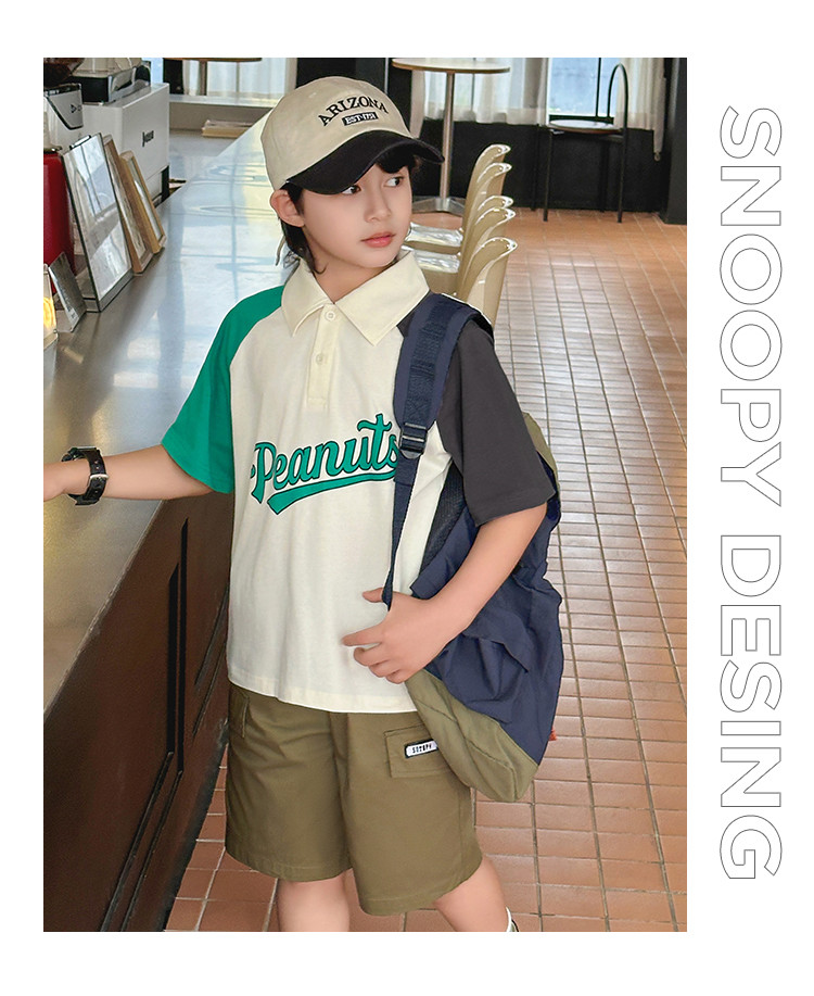 商品名称:【撞色插肩袖POLO衫】夏季中大童休闲上衣翻领T恤男童短袖 499224