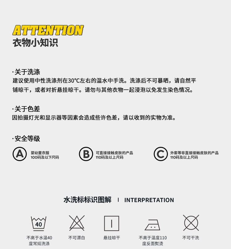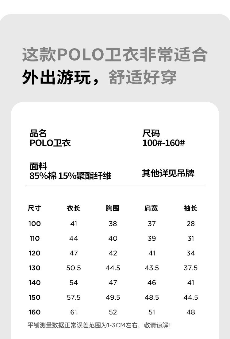 | 尺码 | 衣长(cm) | 肩宽(cm) | 袖长(cm) | 适合年龄 | 胸围(cm) | 号型 |