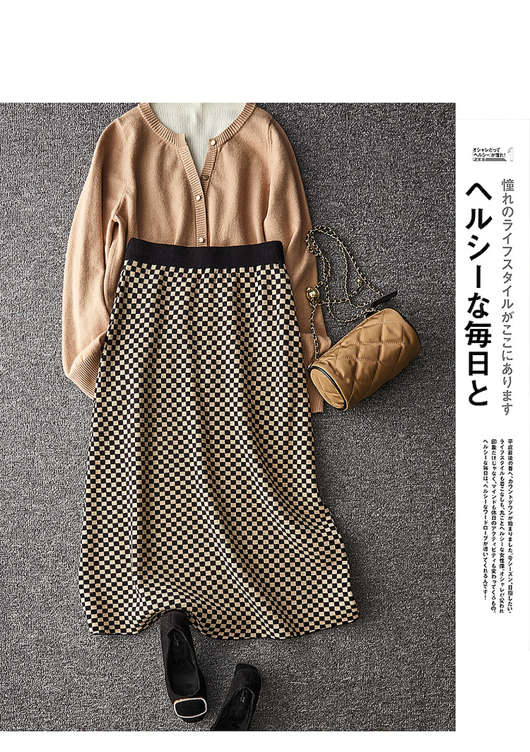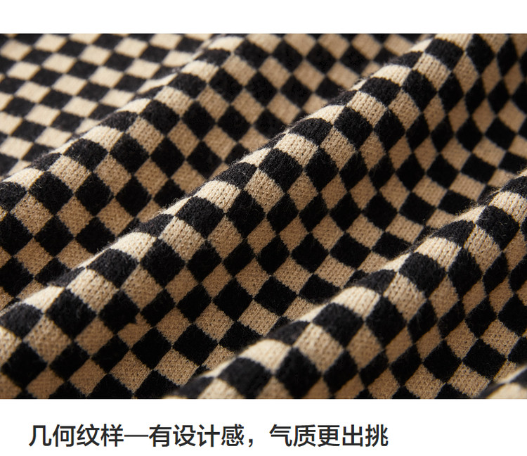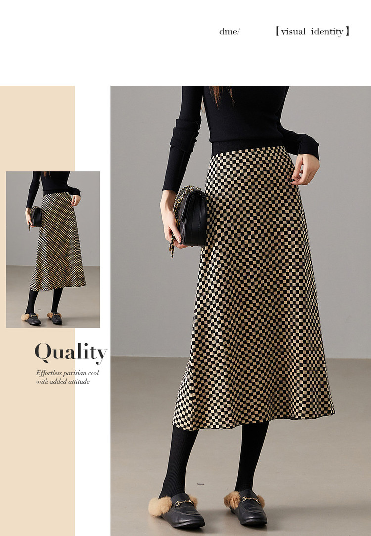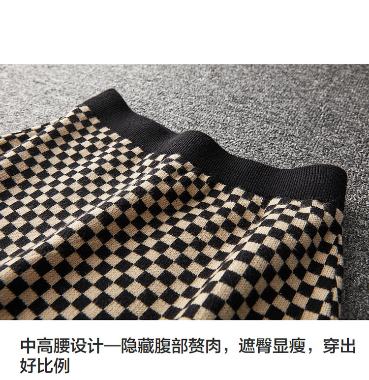 商品名称:【棋盘格工艺】春秋中腰几何a字半裙针织半身裙女中长款 515841