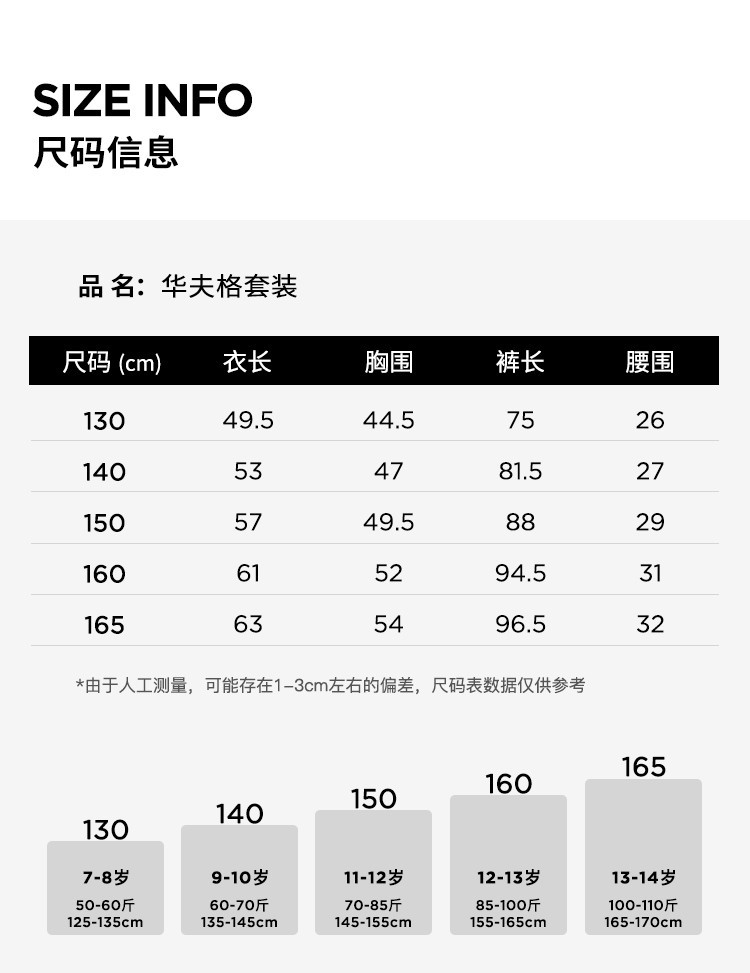 | 165 | 54 | 48 | 165/76 | 10-12岁 | 165/64 | 63 | 160-165 | 32 | 96.5 | 54 | 165/76 |