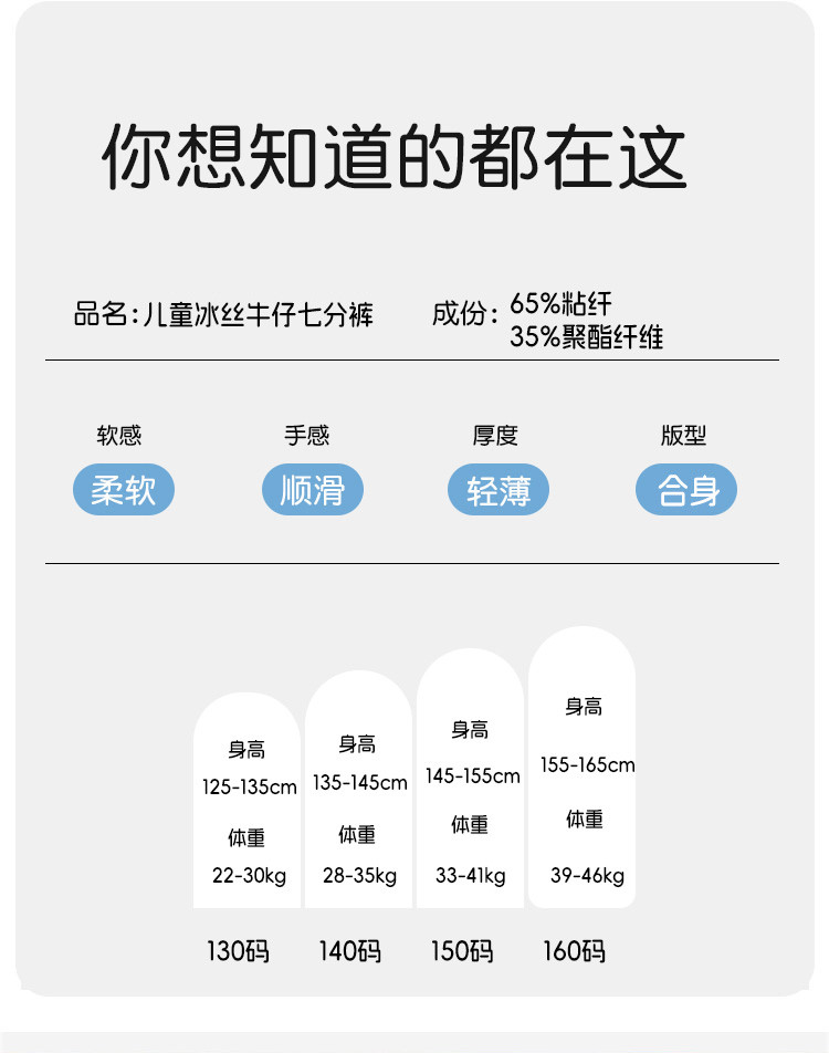 商品名称:男童七分裤夏装2024儿童薄款裤子男孩大童牛仔裤夏季外穿童装 515423