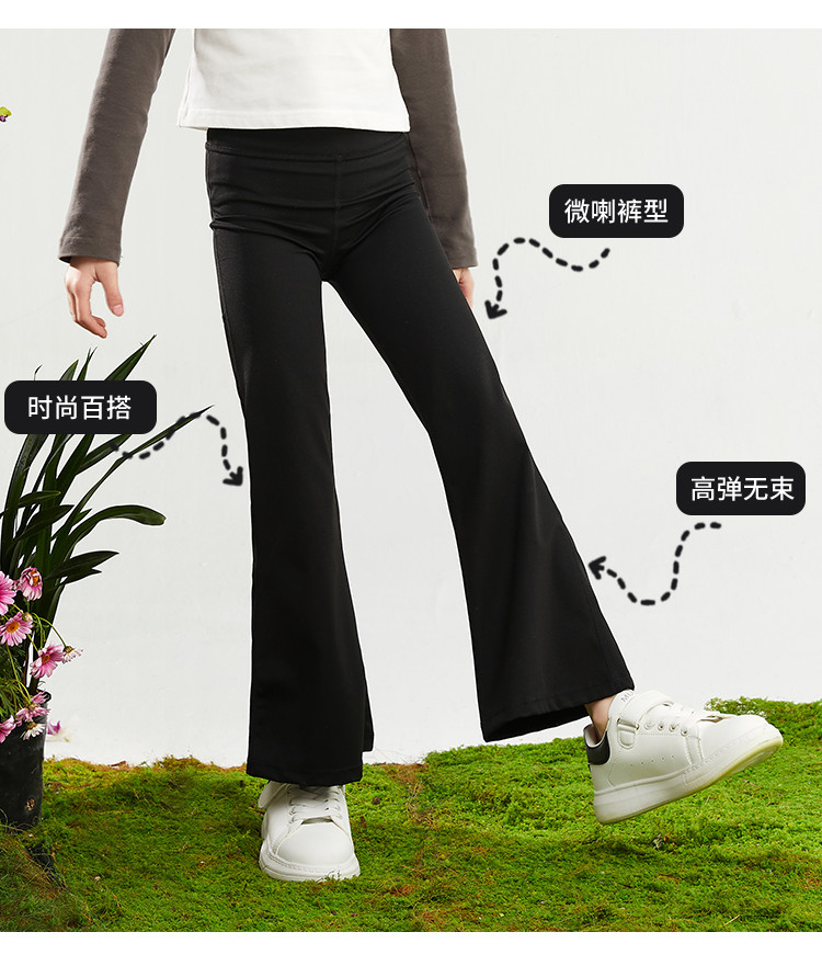 商品名称:女童裤子2025春装新品儿童纯色喇叭裤休闲舒适弹力长裤 026143