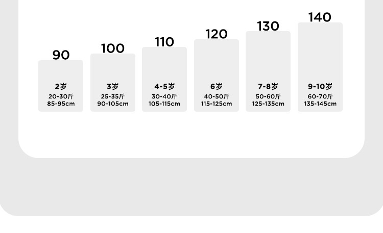| 110 | 100-110 | 23 | 29 | 36.5 | 3-4岁 | 110/53 |