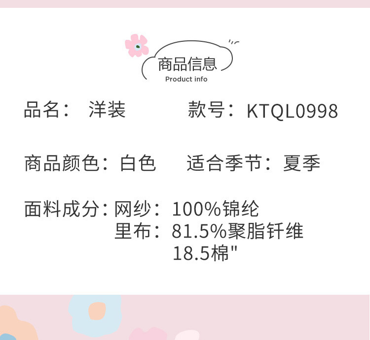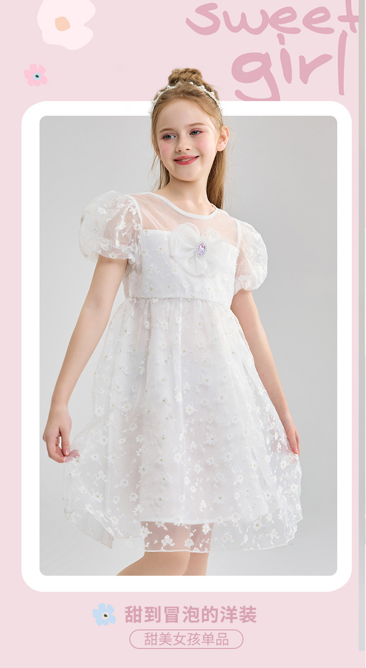 商品名称:【IP联名】儿童连衣裙夏季裙子泡泡袖可爱网纱公主裙高级感碎花 972929
