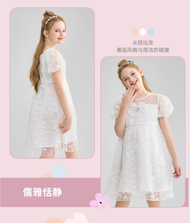 夏季女童温柔甜美连衣裙儿童轻薄舒适亲肤柔软公主裙可爱女孩裙子 852545