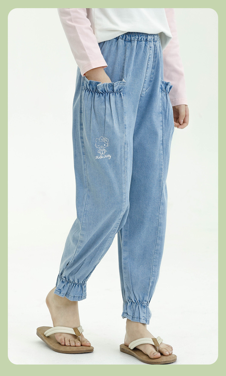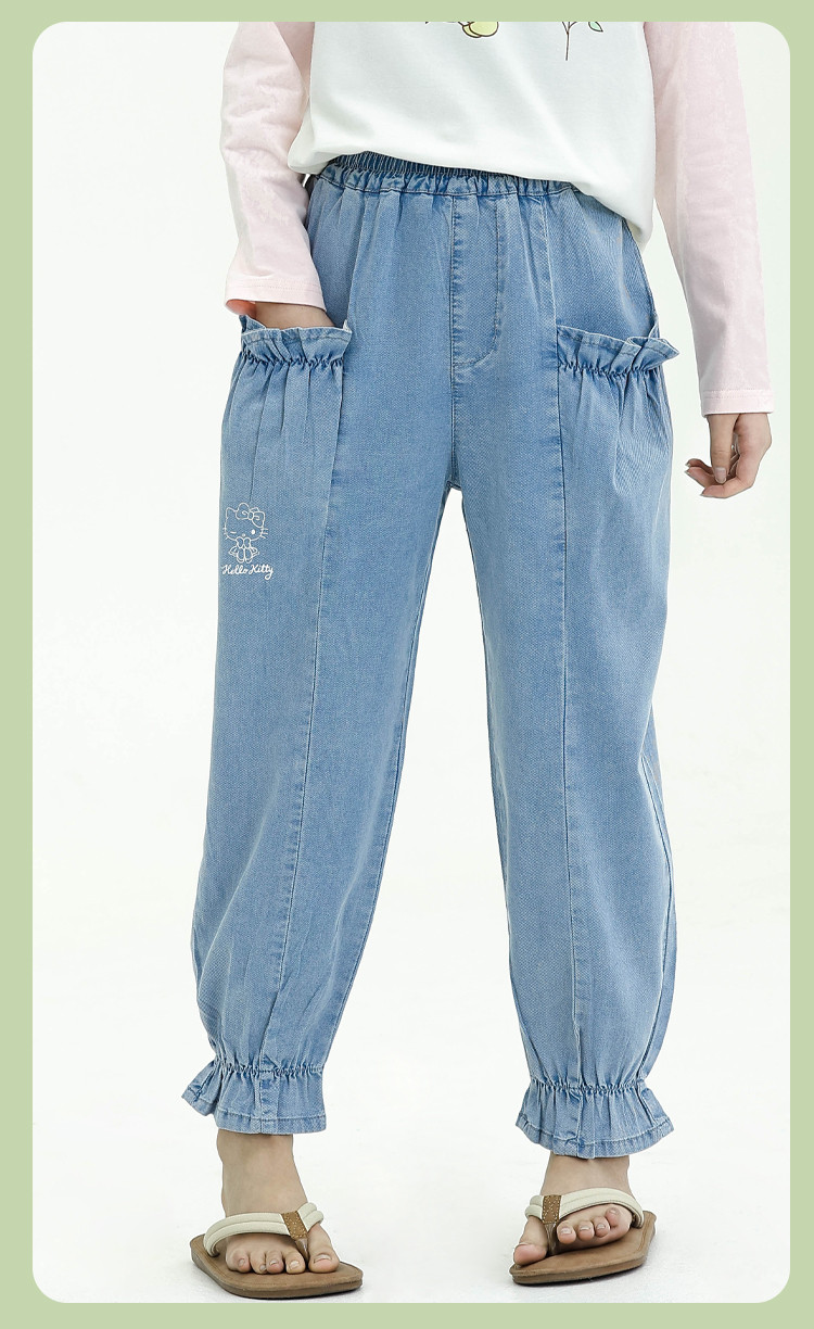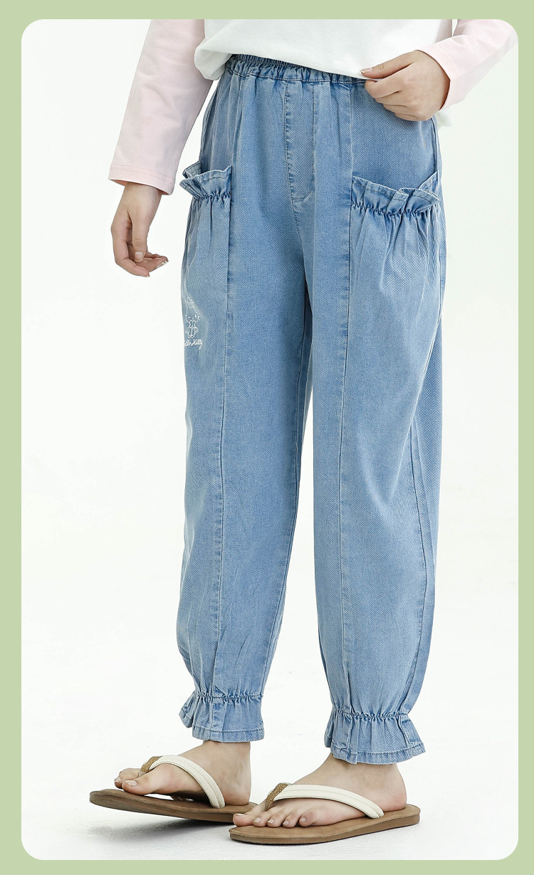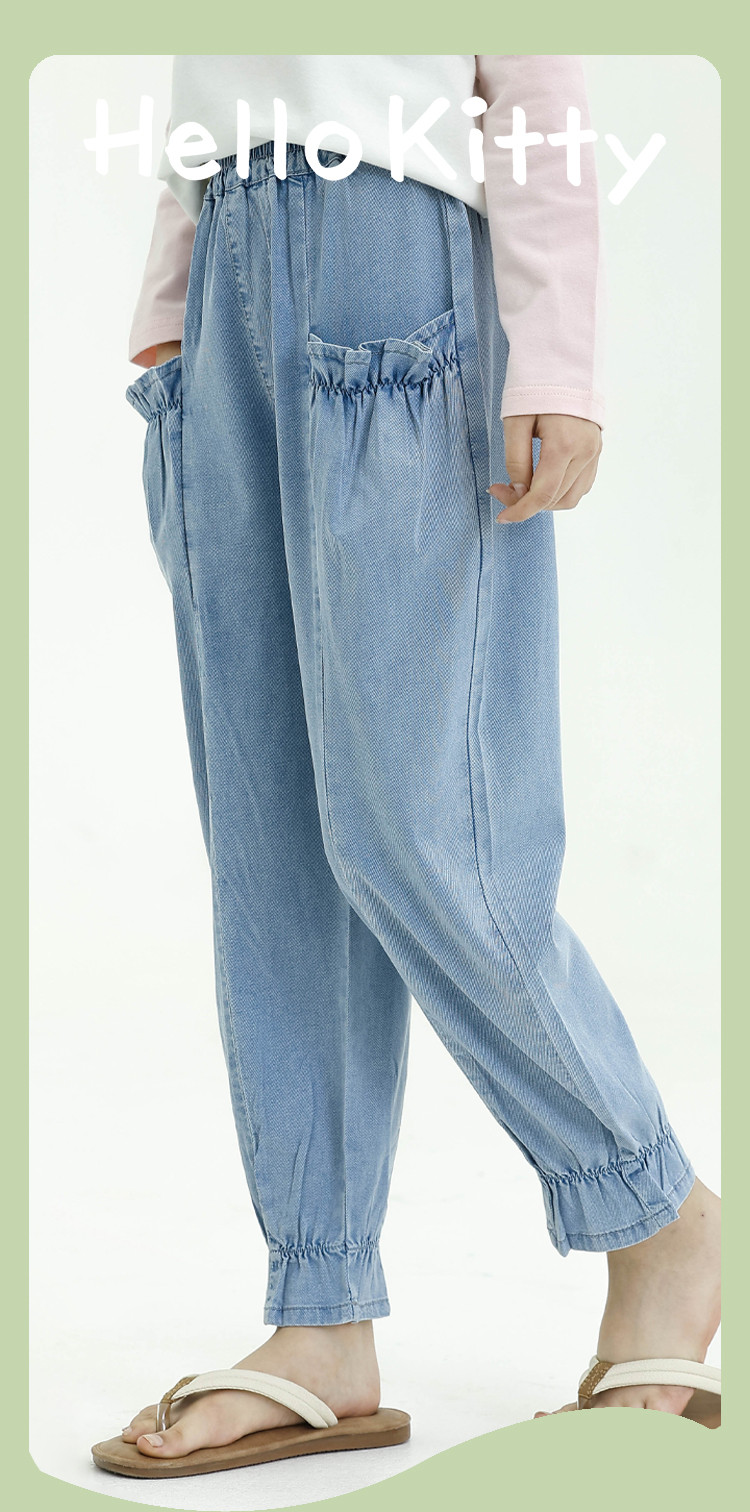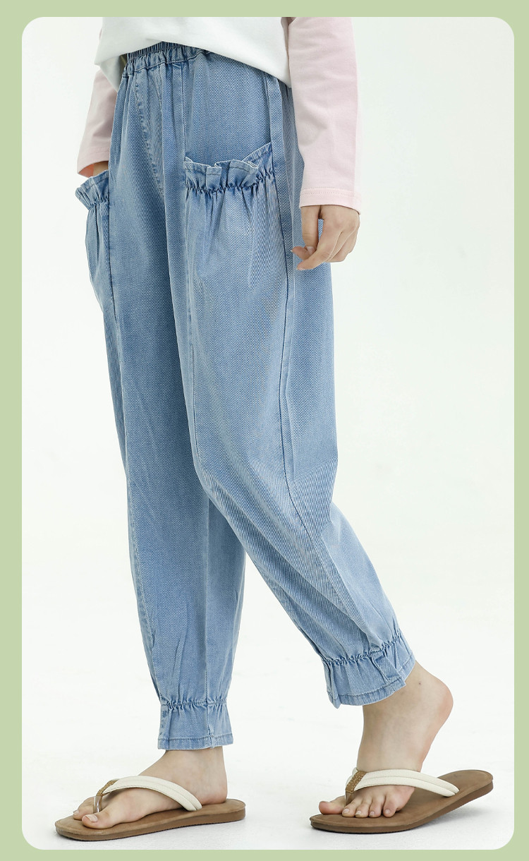 商品名称:【莱赛尔天丝】女童牛仔裤夏薄款运动宽松哈伦裤休闲长裤灯笼裤 635457