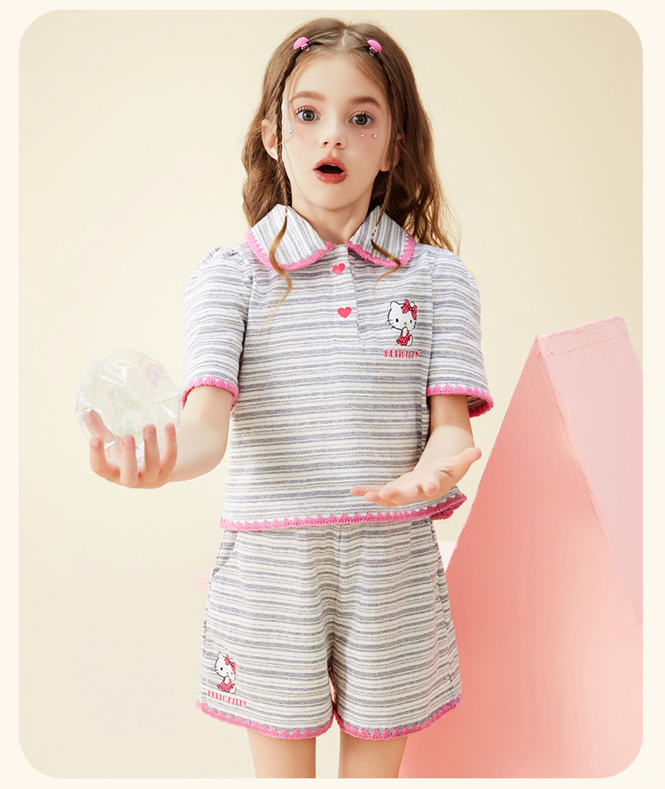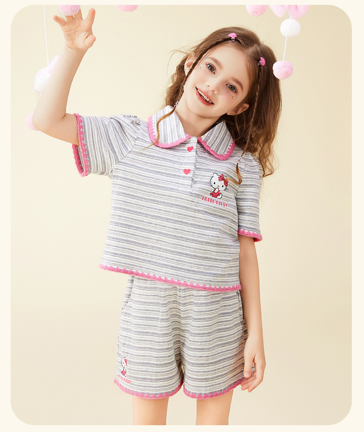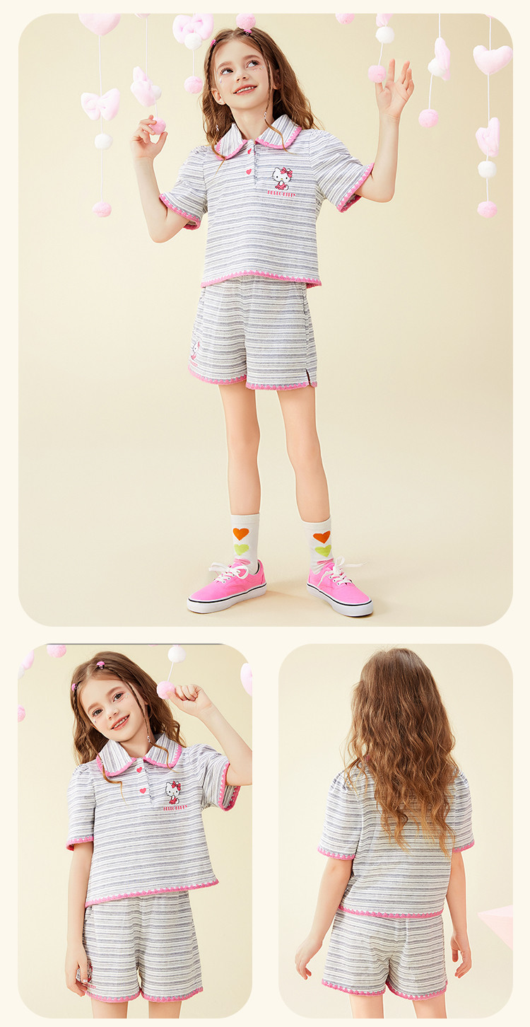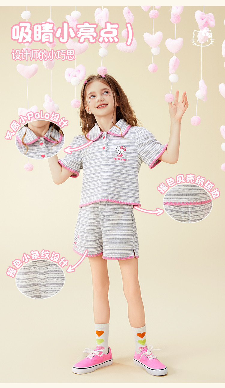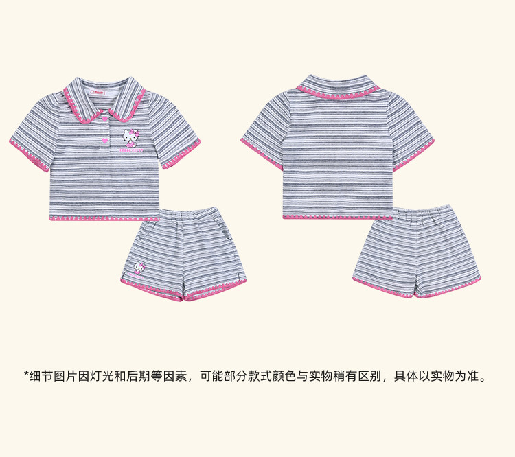 商品名称:女童夏季100%棉套装【撞色条纹贝壳绣锁边POLO领】两件套 598302