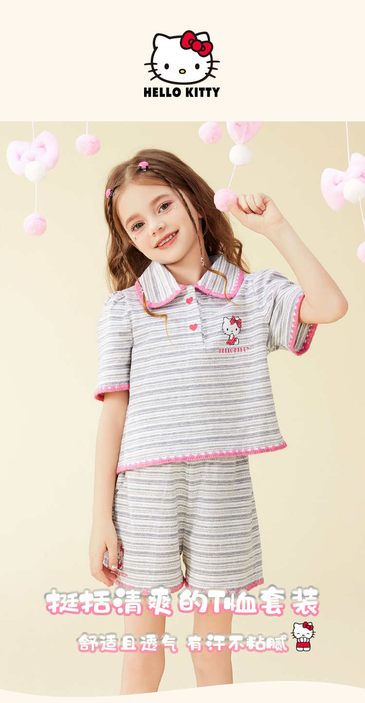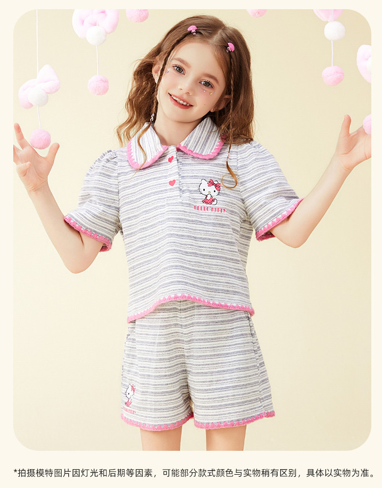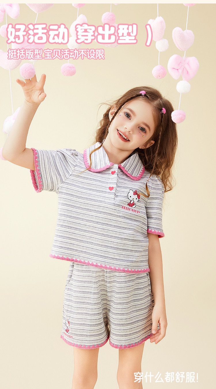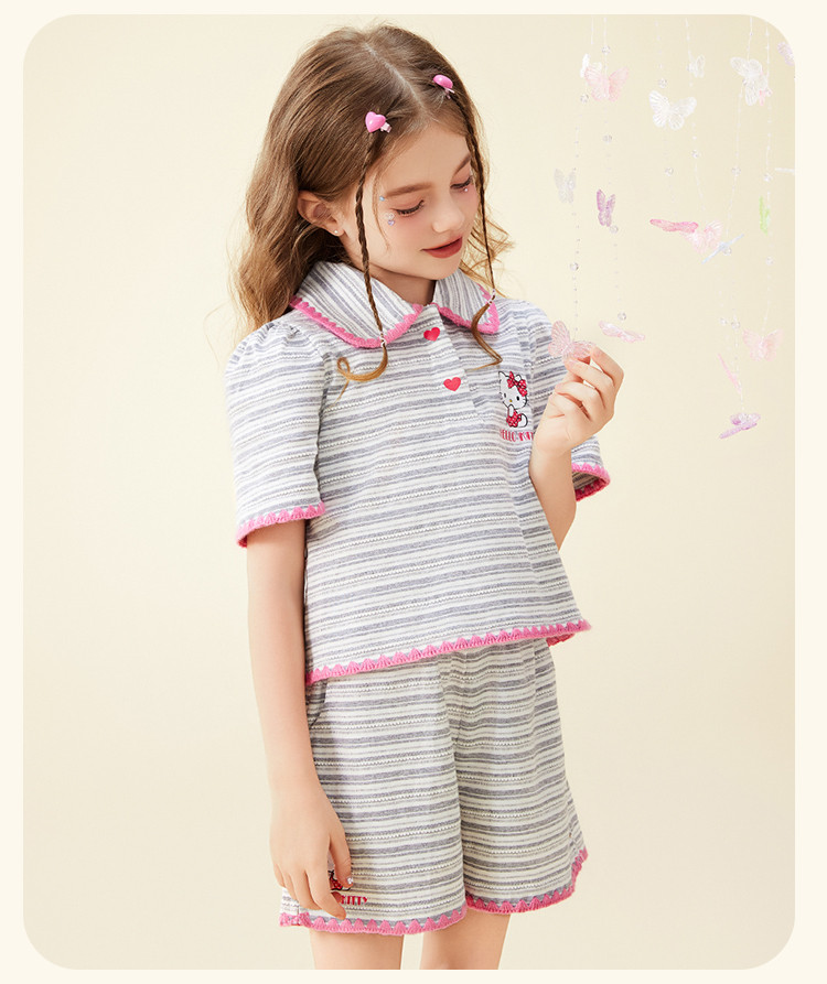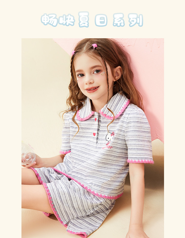商品名称:女童夏季100%棉套装【撞色条纹贝壳绣锁边POLO领】两件套 598302