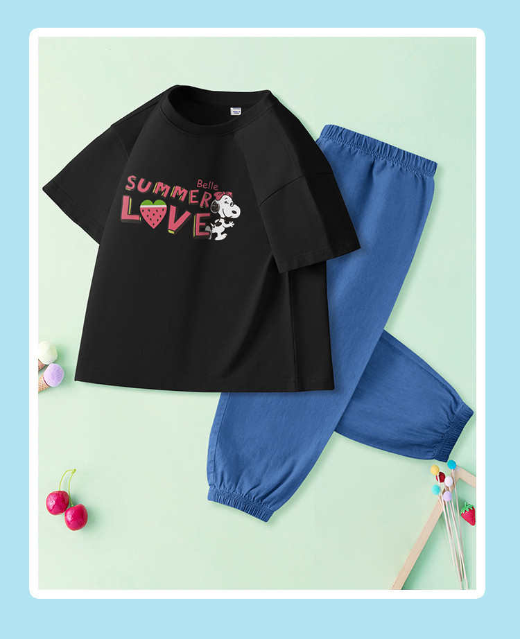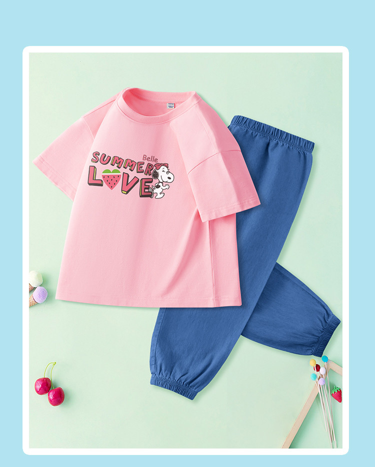商品名称:女童套装2025年夏季纯棉短袖t恤女大童仿牛仔裤儿童两件套薄 555295