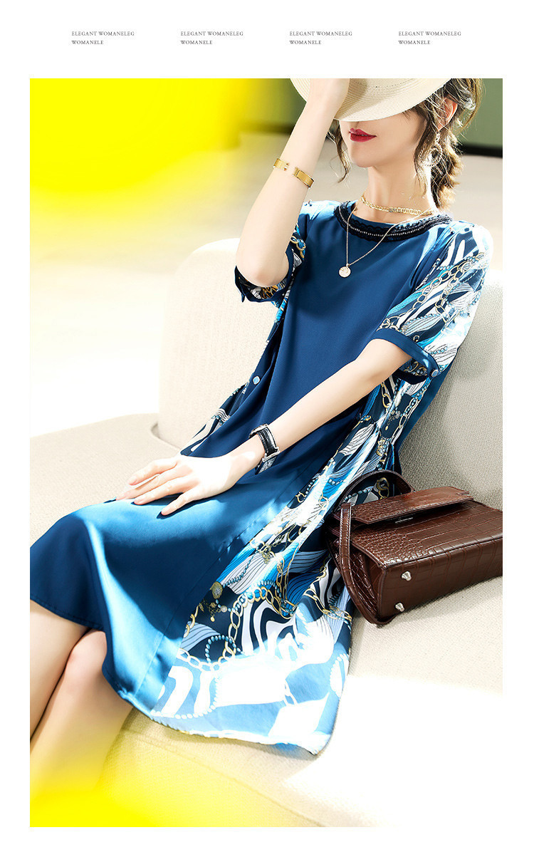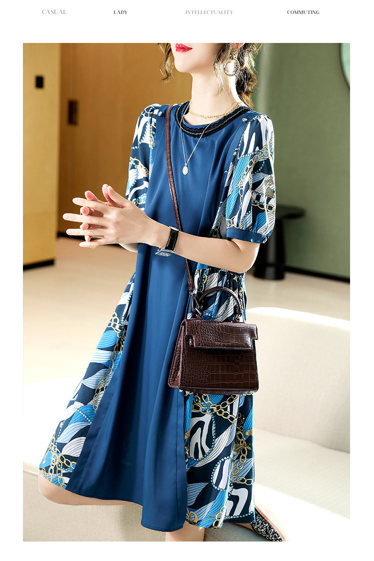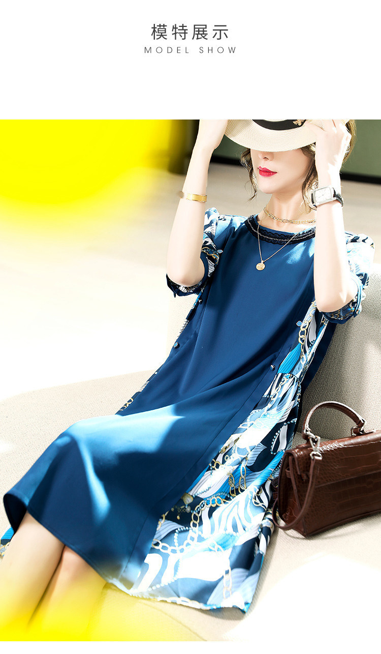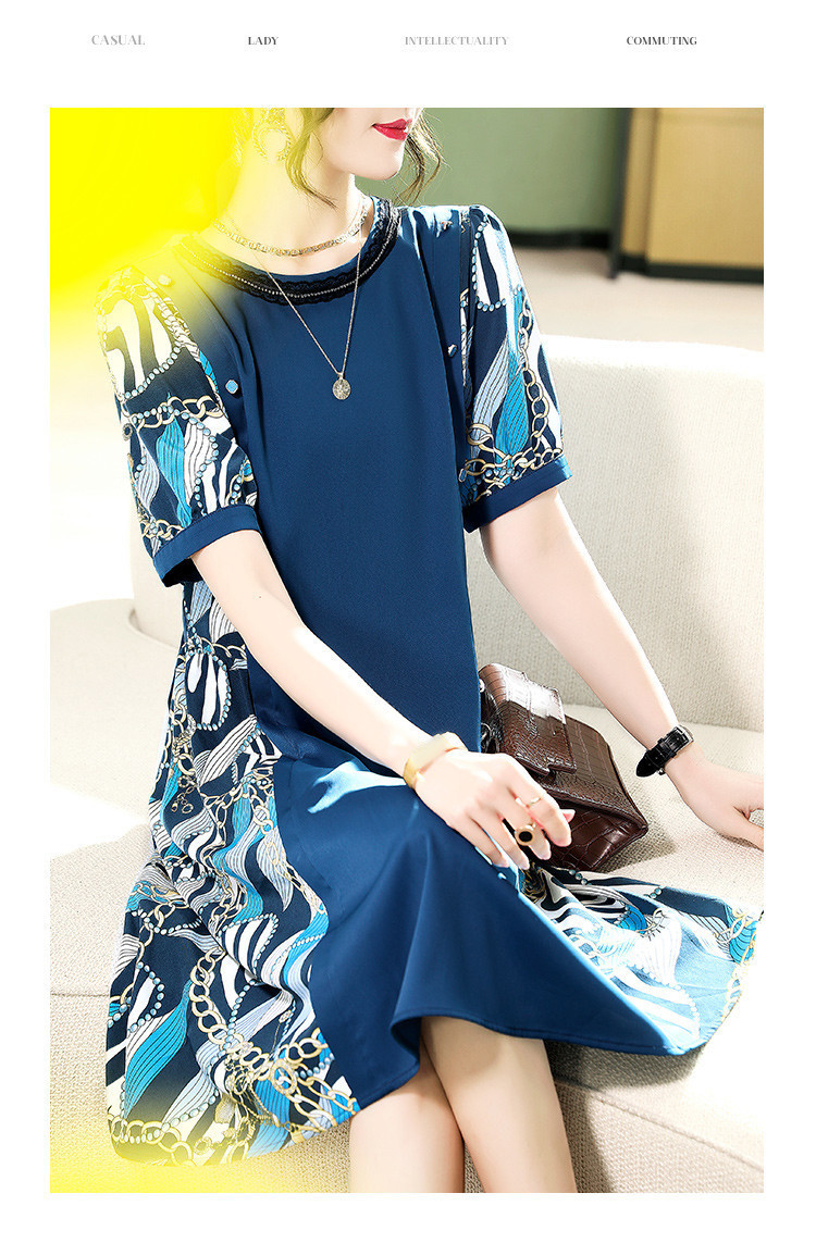 商品名称:【超值捡漏】2025年时尚宽松显瘦撞色印花圆领短袖雪纺连衣裙 855817