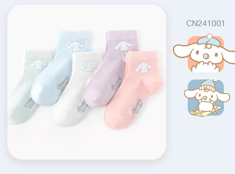 商品名称:【ip联名5双装】女童抗菌袜子春夏季薄款网眼棉袜儿童白色短袜 999233